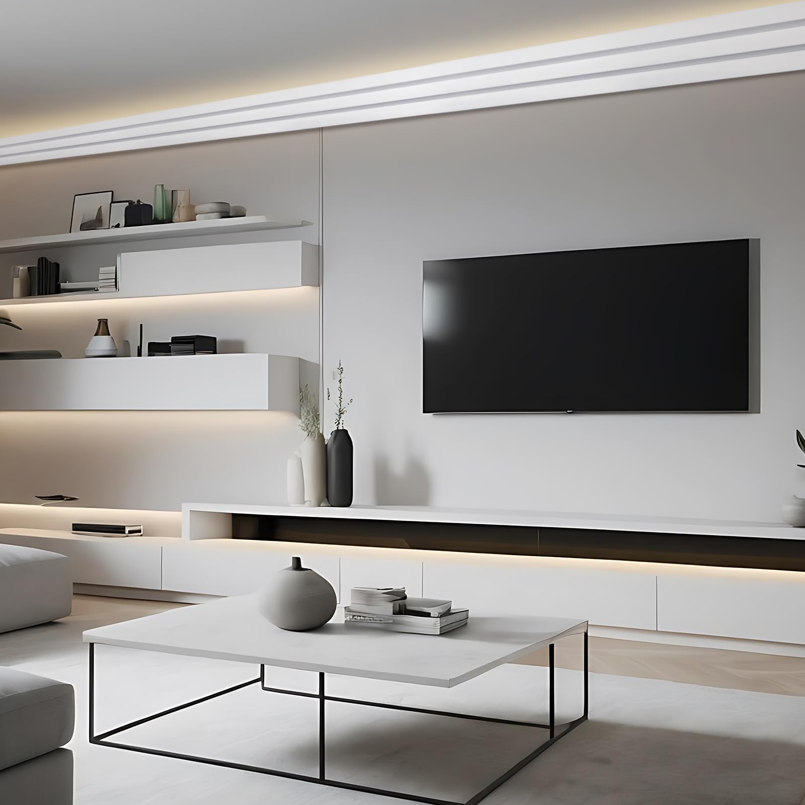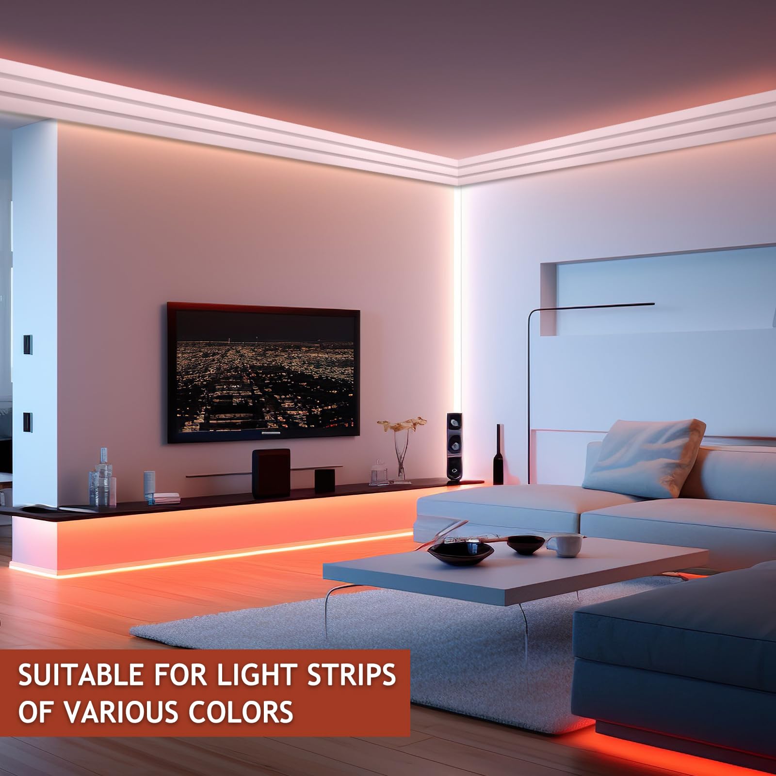 Easy Installation Process: designed for hassle-free installation, our ceiling crown molding adds a polished finish to your walls; Sturdy fit ideal for baseboard LED light strip applications along walls, floors, or standard skirting boards; Ideal for both beginners and experienced DIY enthusiasts; Note: adhesives or glue are not included in the package