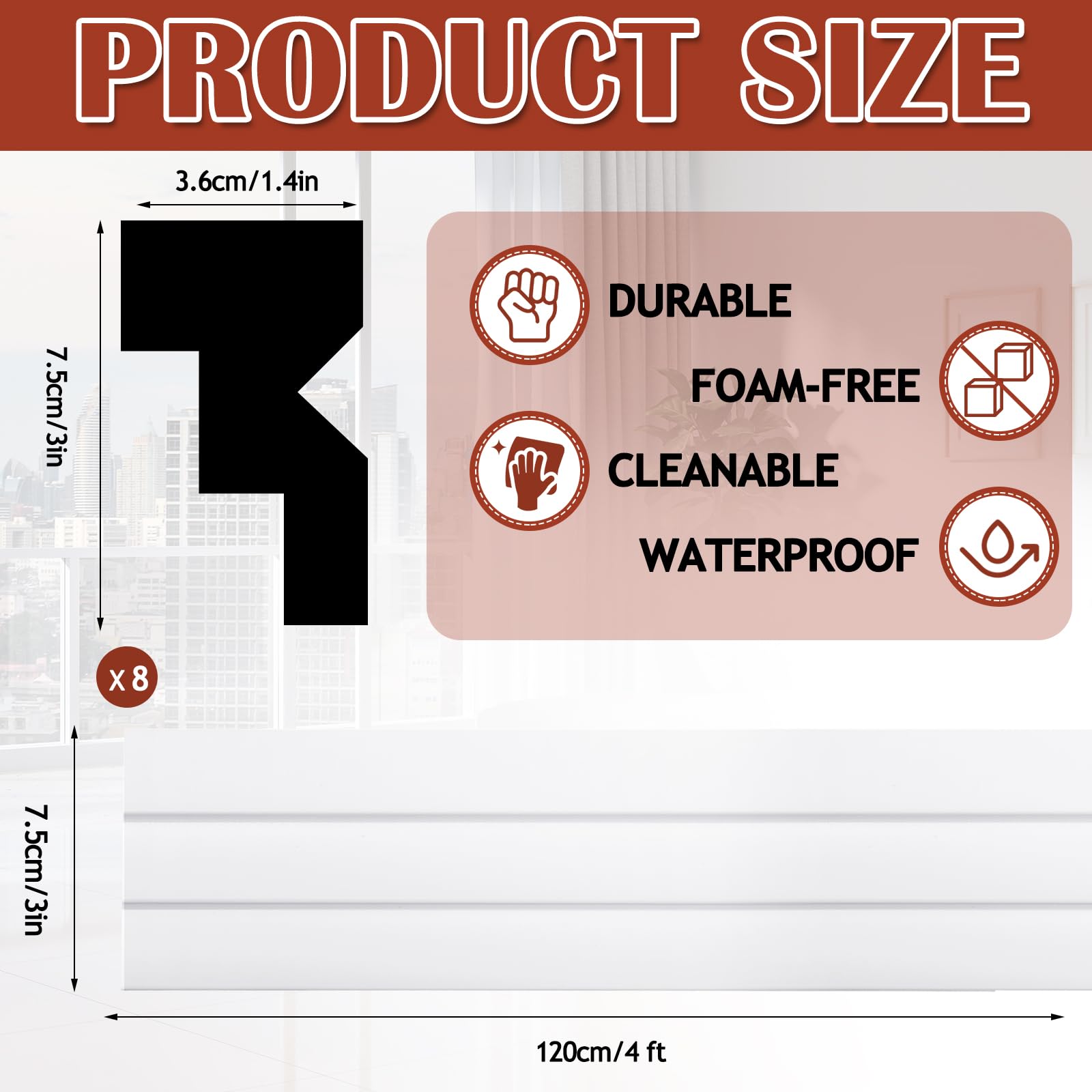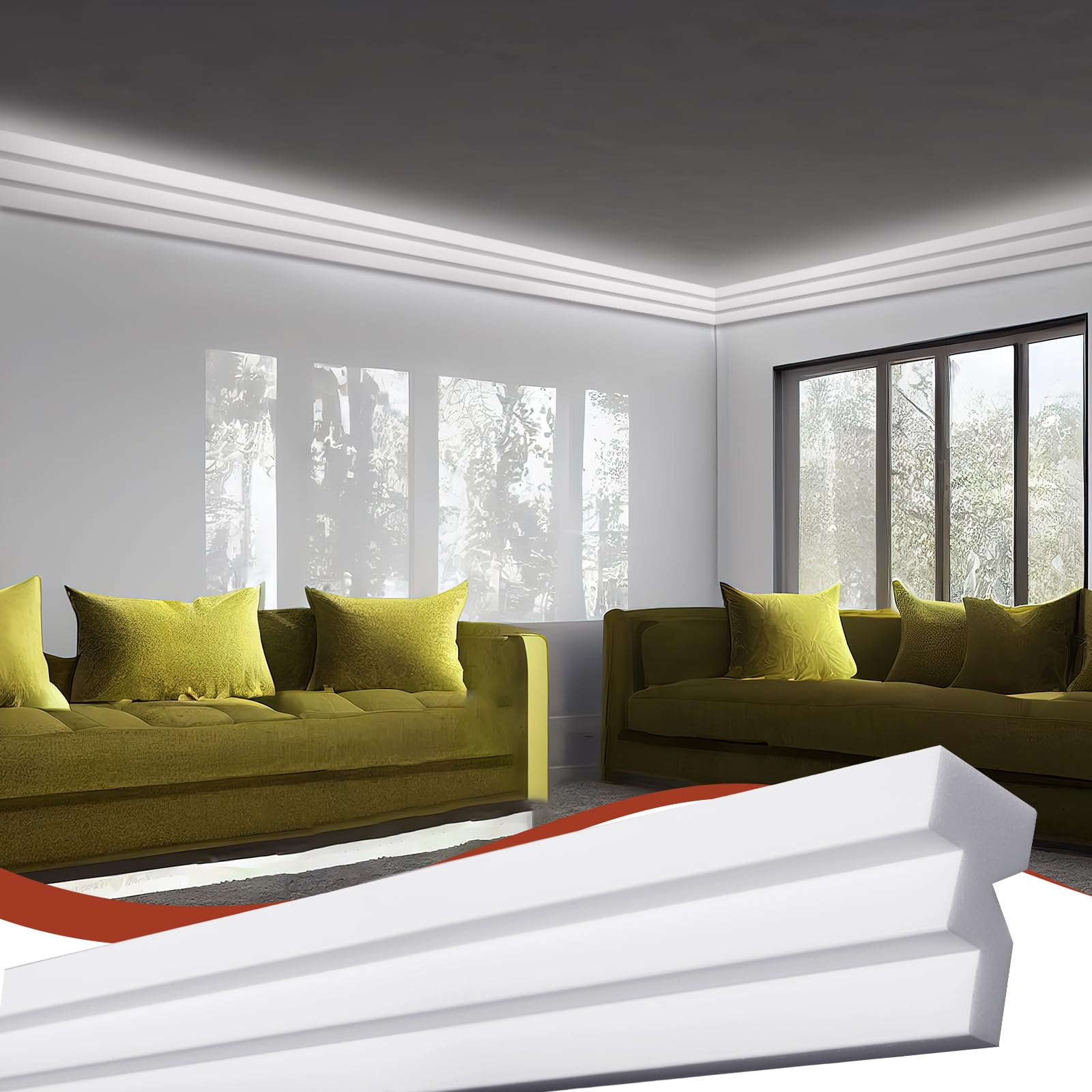 Customizable Paint Finish & Waterproof: our white crown moulding can be painted to match your style and paired with various LED lights to add a personalized touch to your home; Its waterproof surface makes it ideal for bathroom LED molding or Ceiling or floor baseboard molding