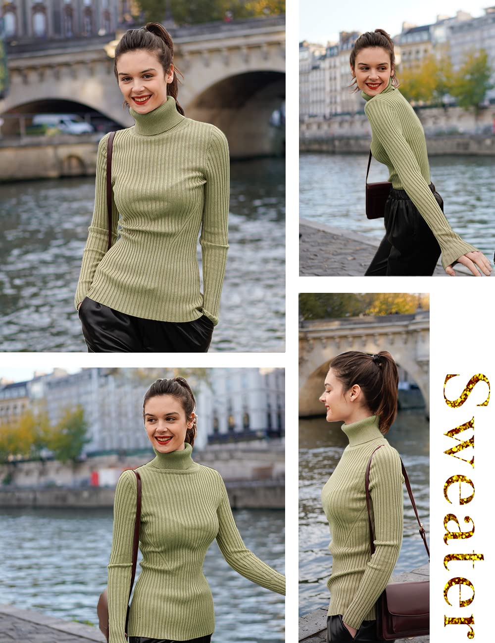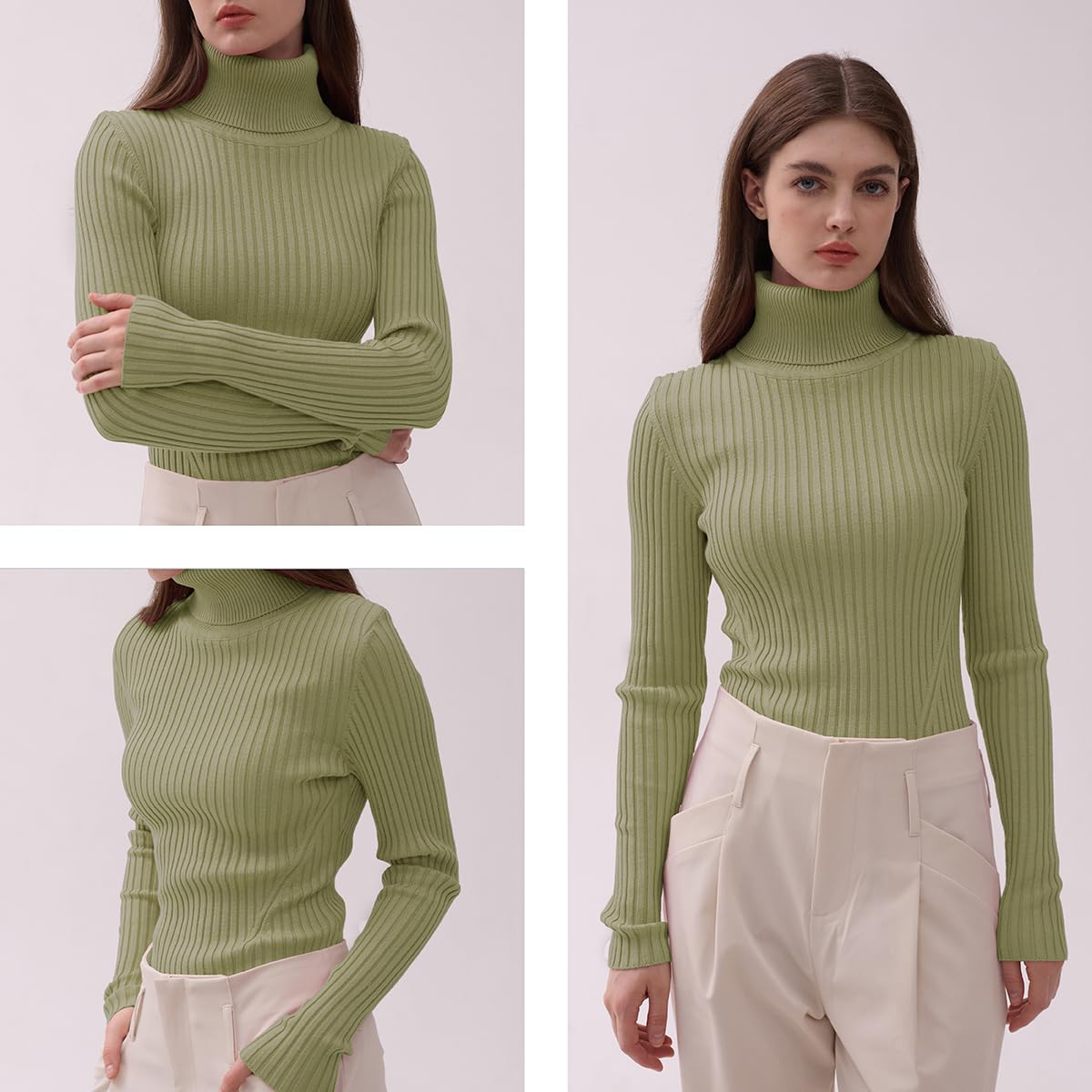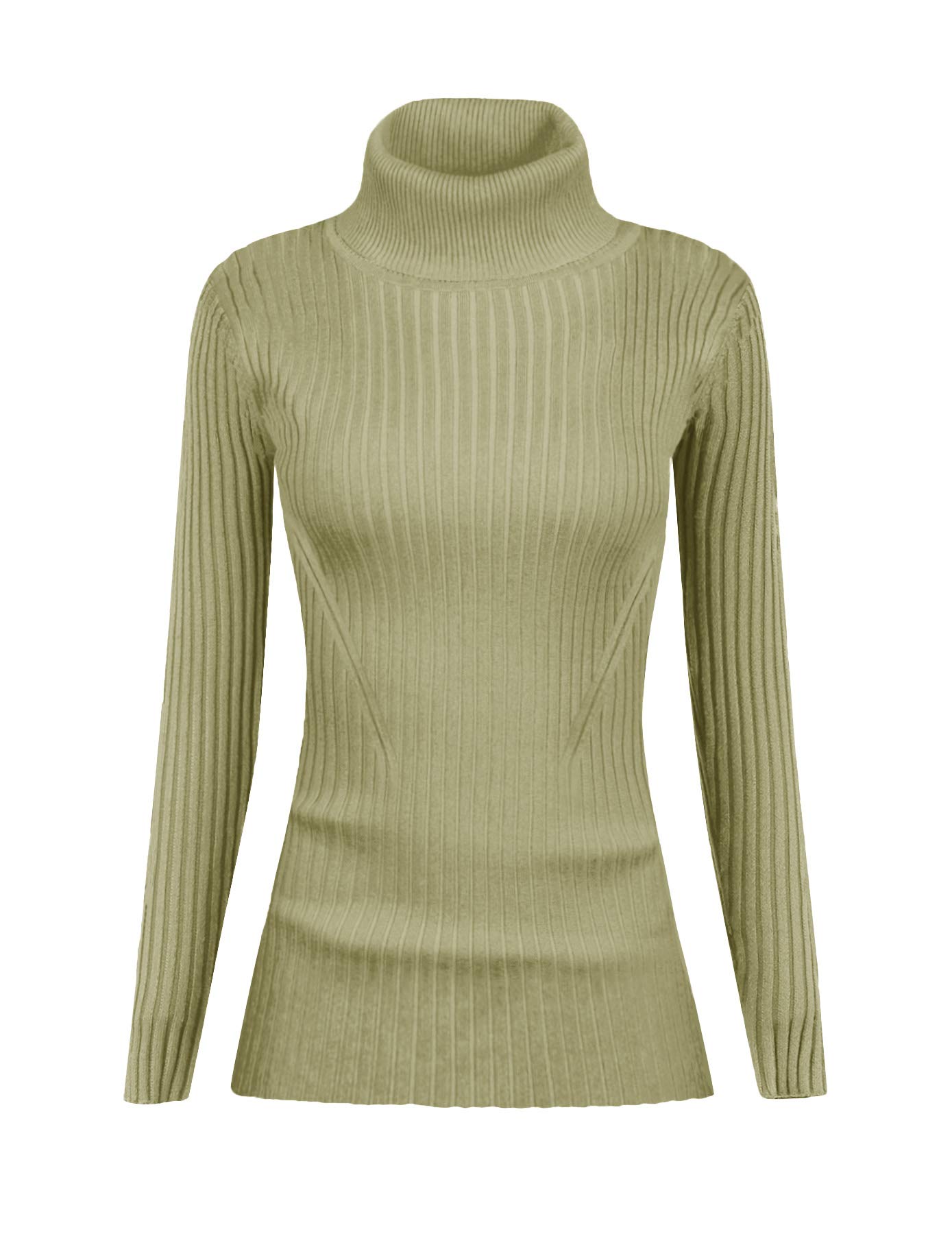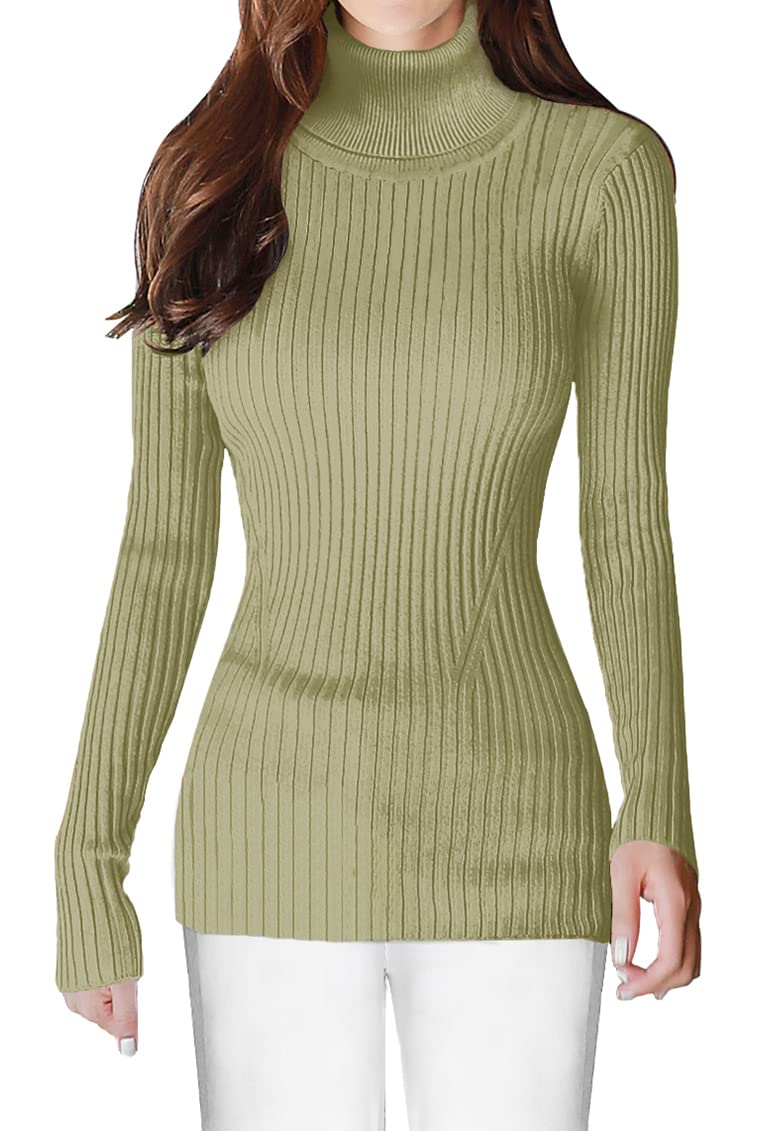 Turtle Neck Ribbed Sweater -- Knitted by Germany STROLL Machine to Ensure its High Quality Material: Highly Stretchable Viscose (Comfy Silky Smooth Feeling and Showing Off your Sexy Female Curve Silhouette)
