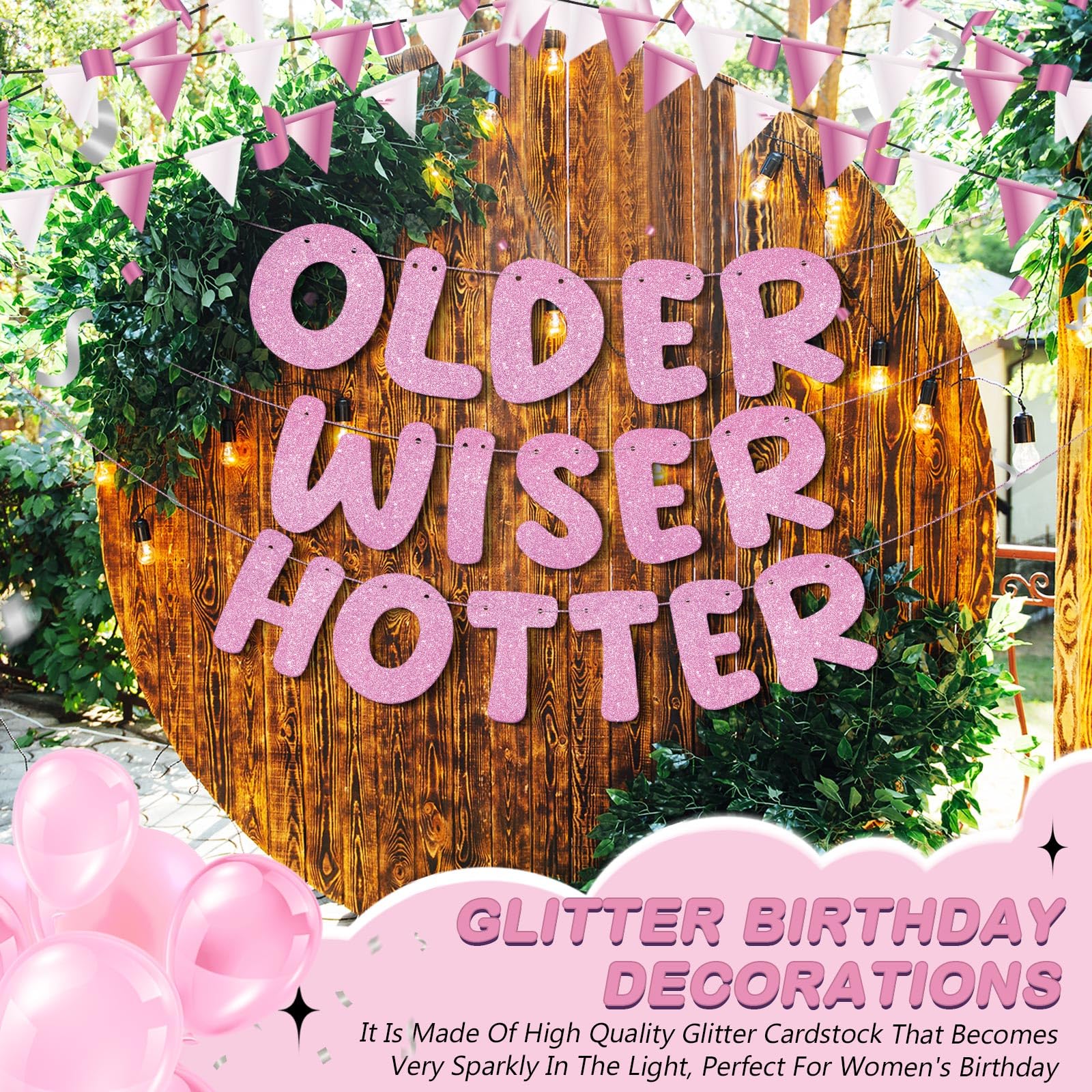 Versatile Decoration: not limited to just birthdays, this older wiser hotter birthday banner is a fantastic addition to various festivities like anniversaries, or even a girls' night out; Its universal appeal and stylish design ensure it can be utilized for different occasions, making it a versatile party essential