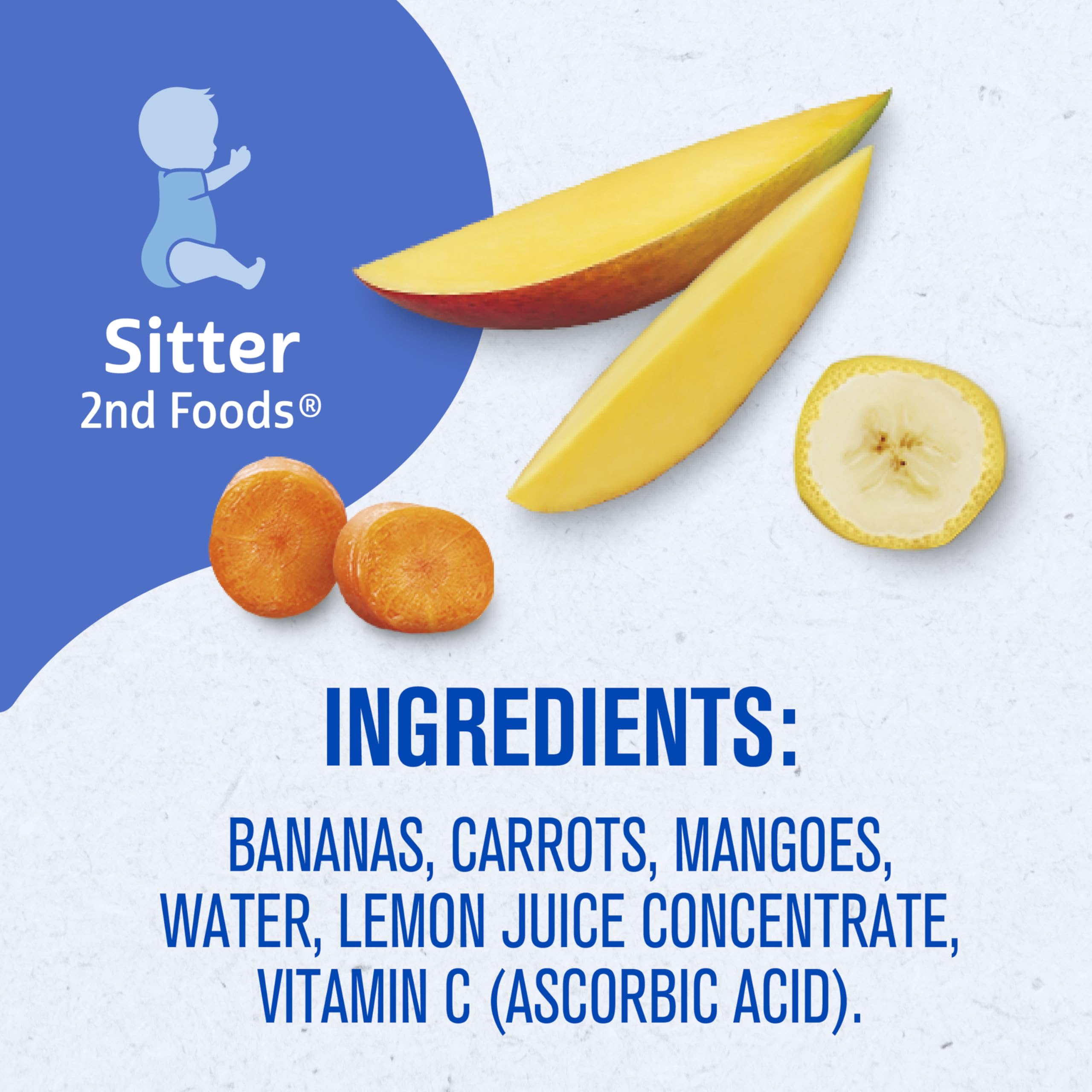 BABY FOOD PUREE: This tub has 2/5 banana, 1/2 carrot, and 2 tbsp mango. The banana, carrot and mango are pureed to ensure a smooth and enjoyable eating experience for your baby