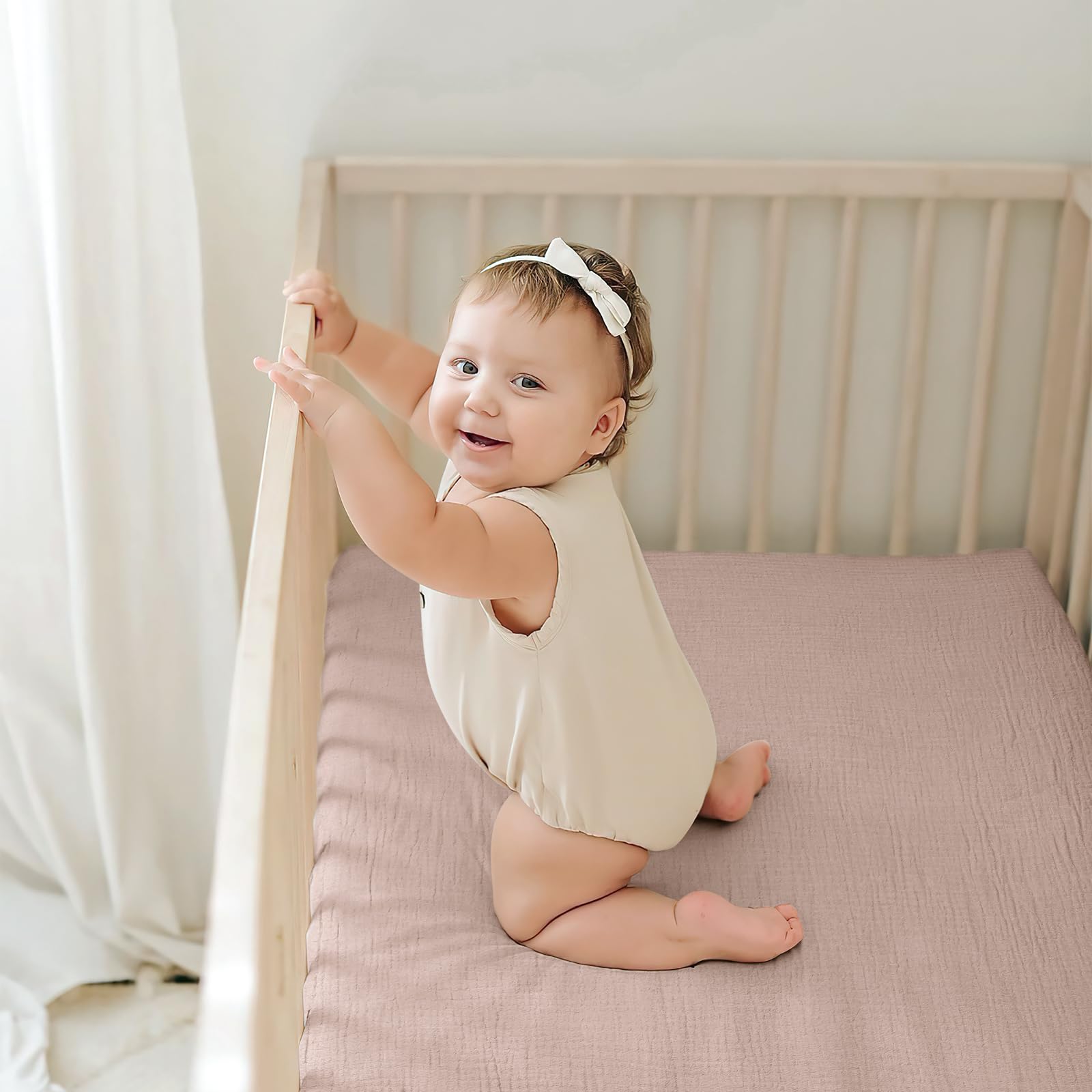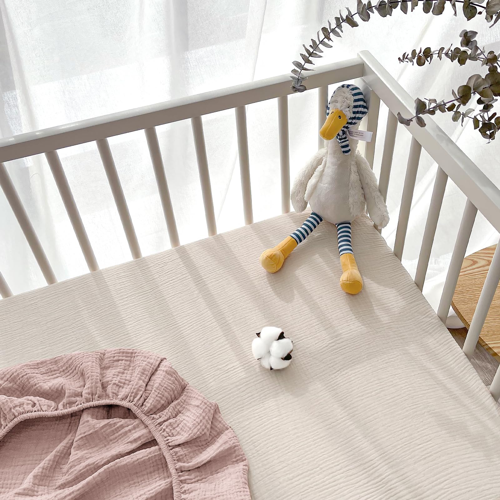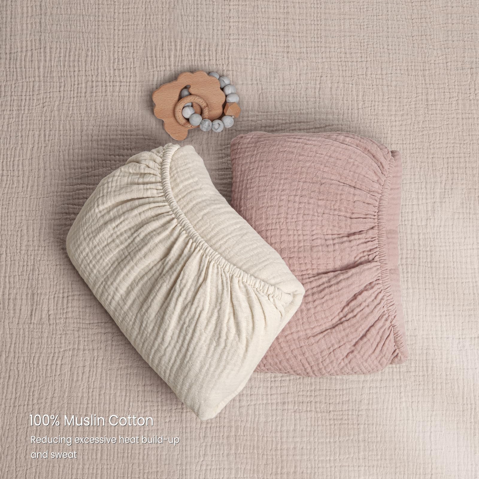 SOFT AND COMFORTABLE - The crib sheets is made of 100% muslin cotton, super soft, comfortable, and won't irritate your baby's delicate skin. Lightweight, breathable muslin crib sheets stay cool even in warm weather.