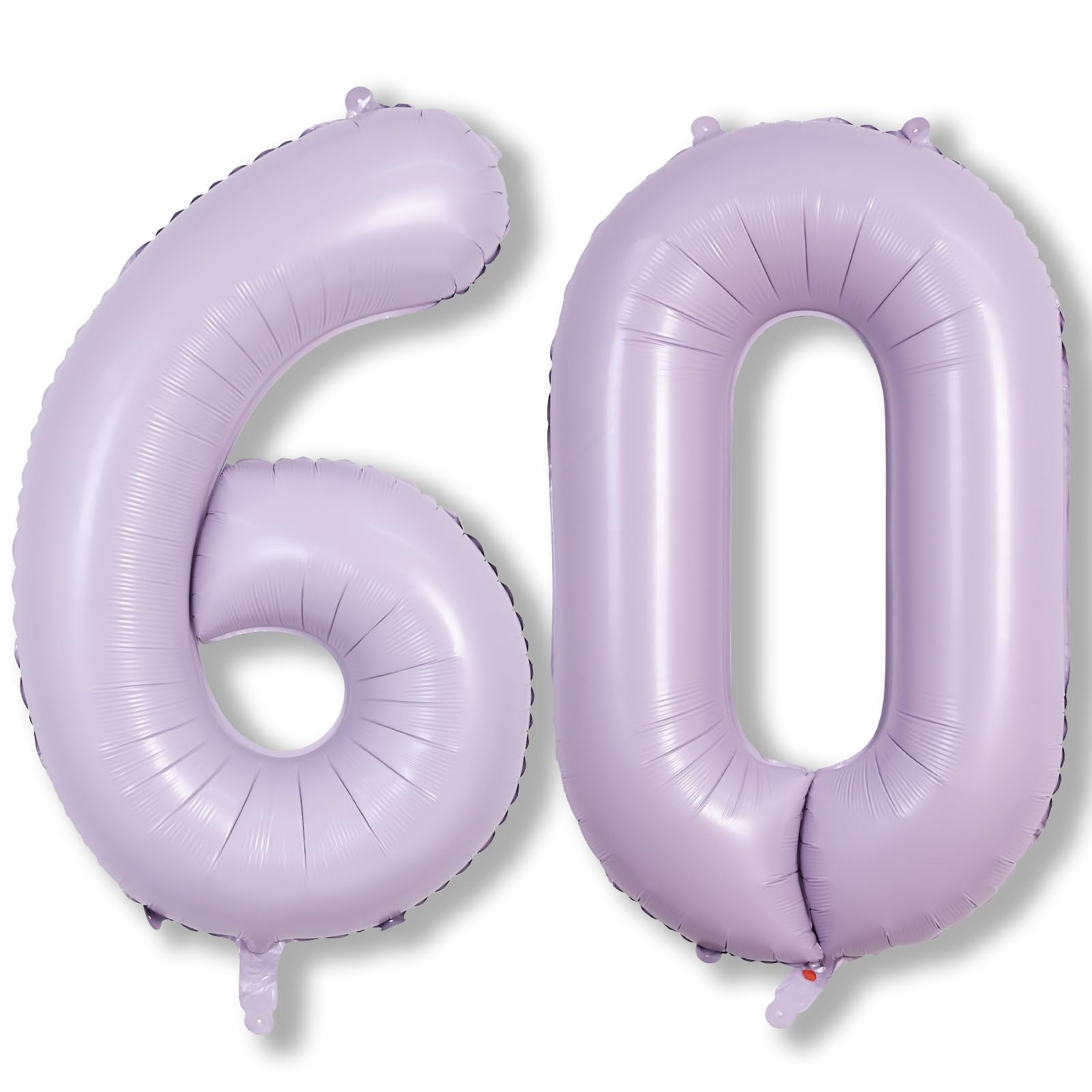 💕 Perfect Party Decorations 💕 - The gentle pastel lavender number 60 mylar foil balloons is ideal for girls women 6th 60th birthday party balloons, as a backdrop or photo props, pool party, 40th anniversary event wedding party, baby shower party, engagement ceremony, graduation, new year party decorations supplies.