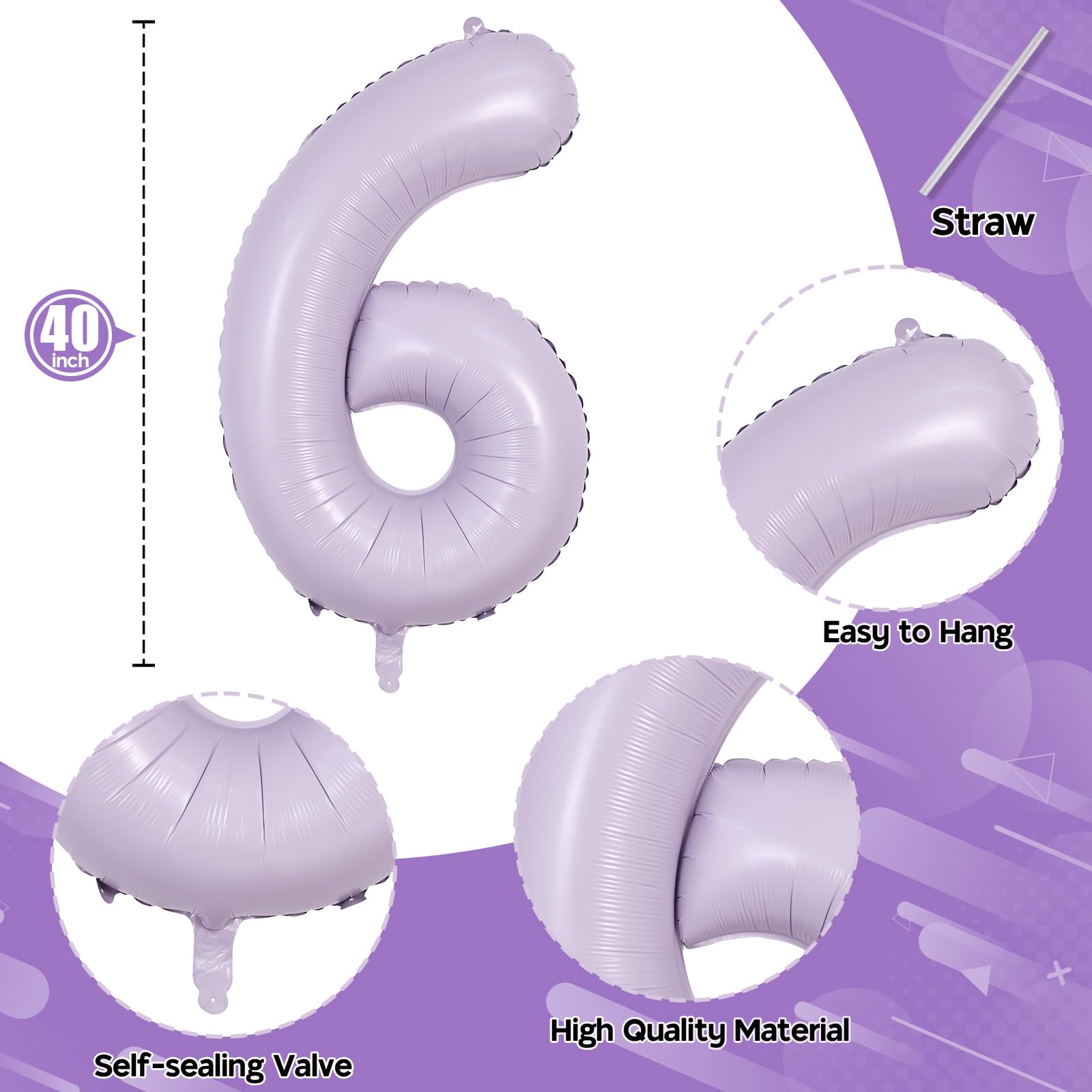💕 Pastel Purple Number 60 Balloon Set 💕 - You will get 2pcs 40 inch light purple mylar foil number balloons (number 6 + number 0) and 1pc straw. Perfect for decorating girls women 6th or 60th birthday party.