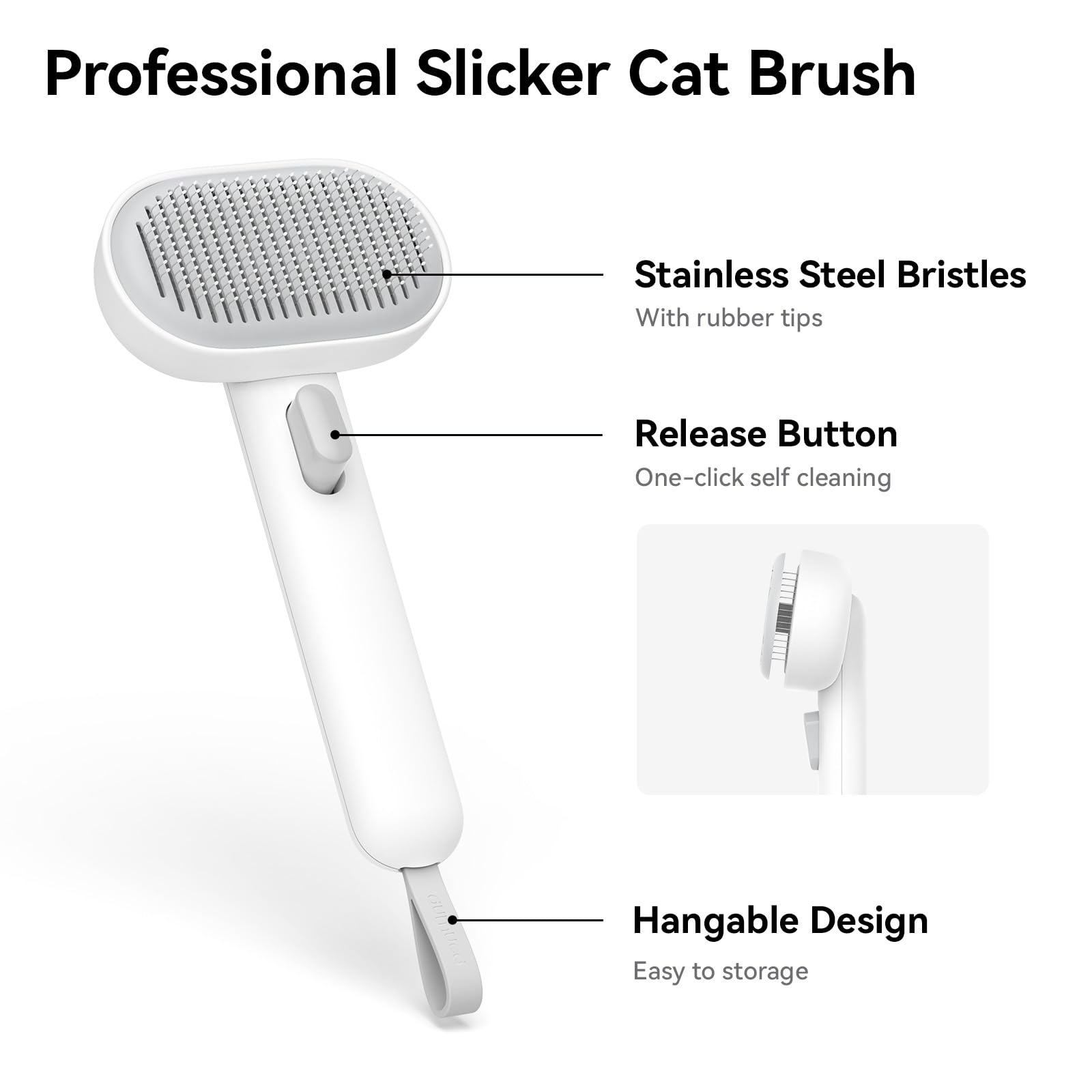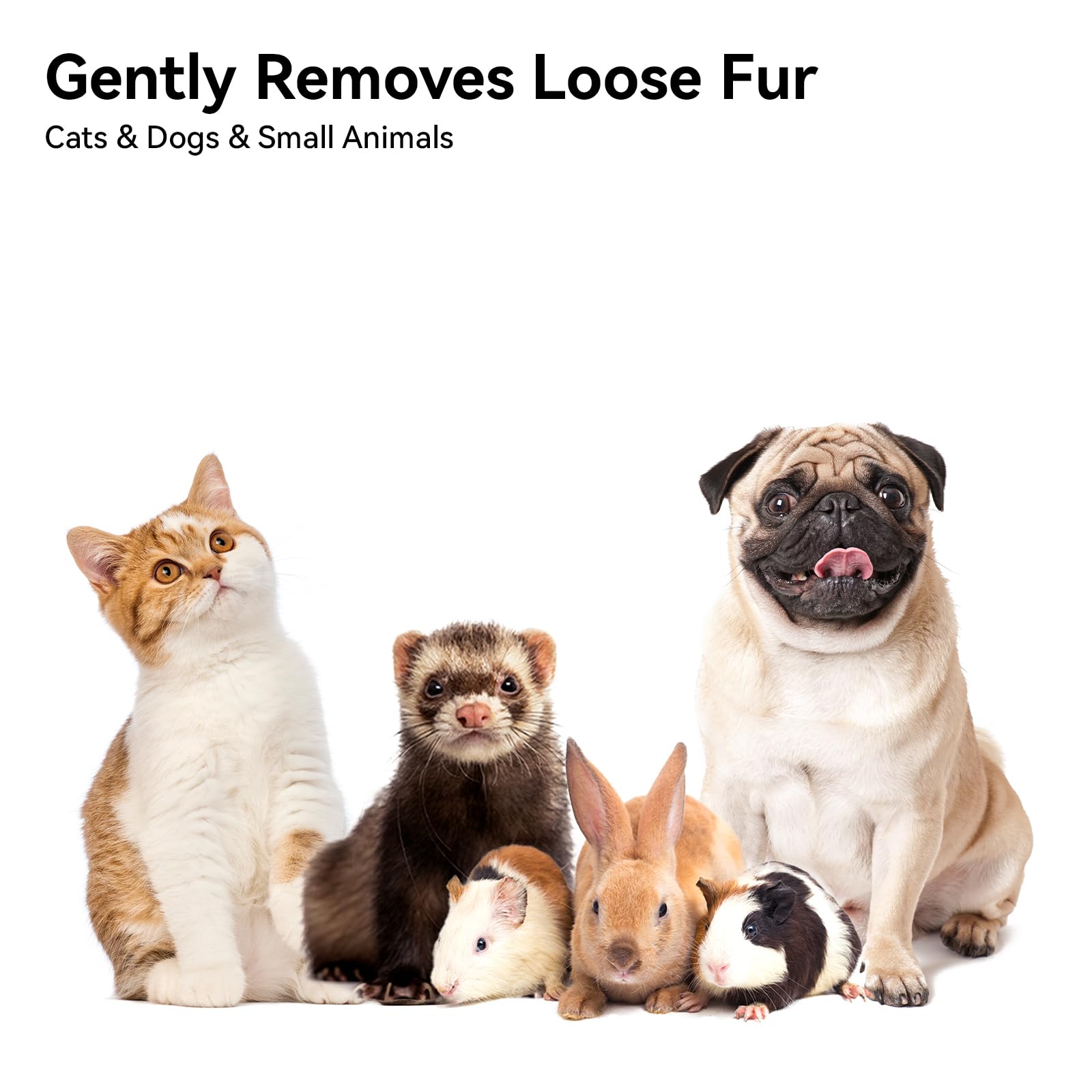 【Skin-friendly Massage Needles】The mental pins on the cat brush with release button have round rubber tips on the ends. As a cat deshedding brush, it's perfect for shedding and massaging your pets without scratching your pet's skin, even the sensitive skin. After use, you can hang it with the silicone loop strap to protect the bent needle.