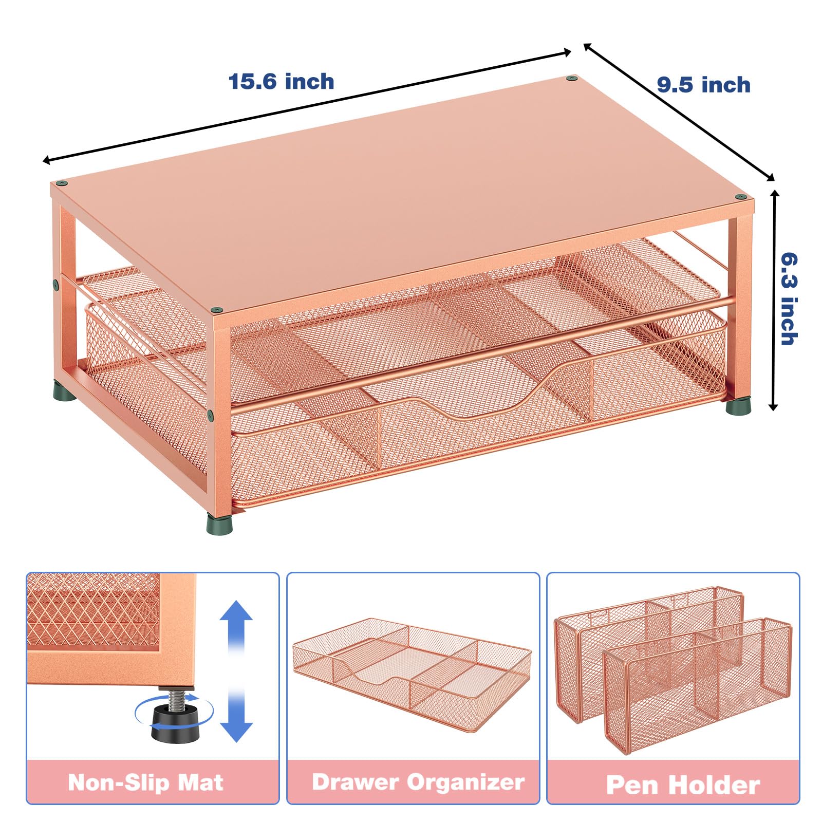 Hassle free Shopping:OPNICE is committed to providing excellent after-sales service and offers a 100-day unconditional return policy for desk organizers and accessories. Comes with four non-slip pads that are height-adjustable to protect your table from scratches