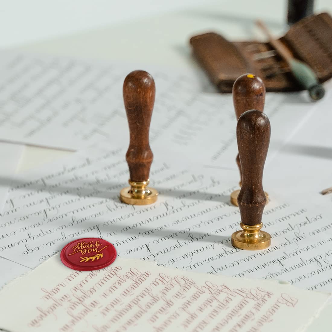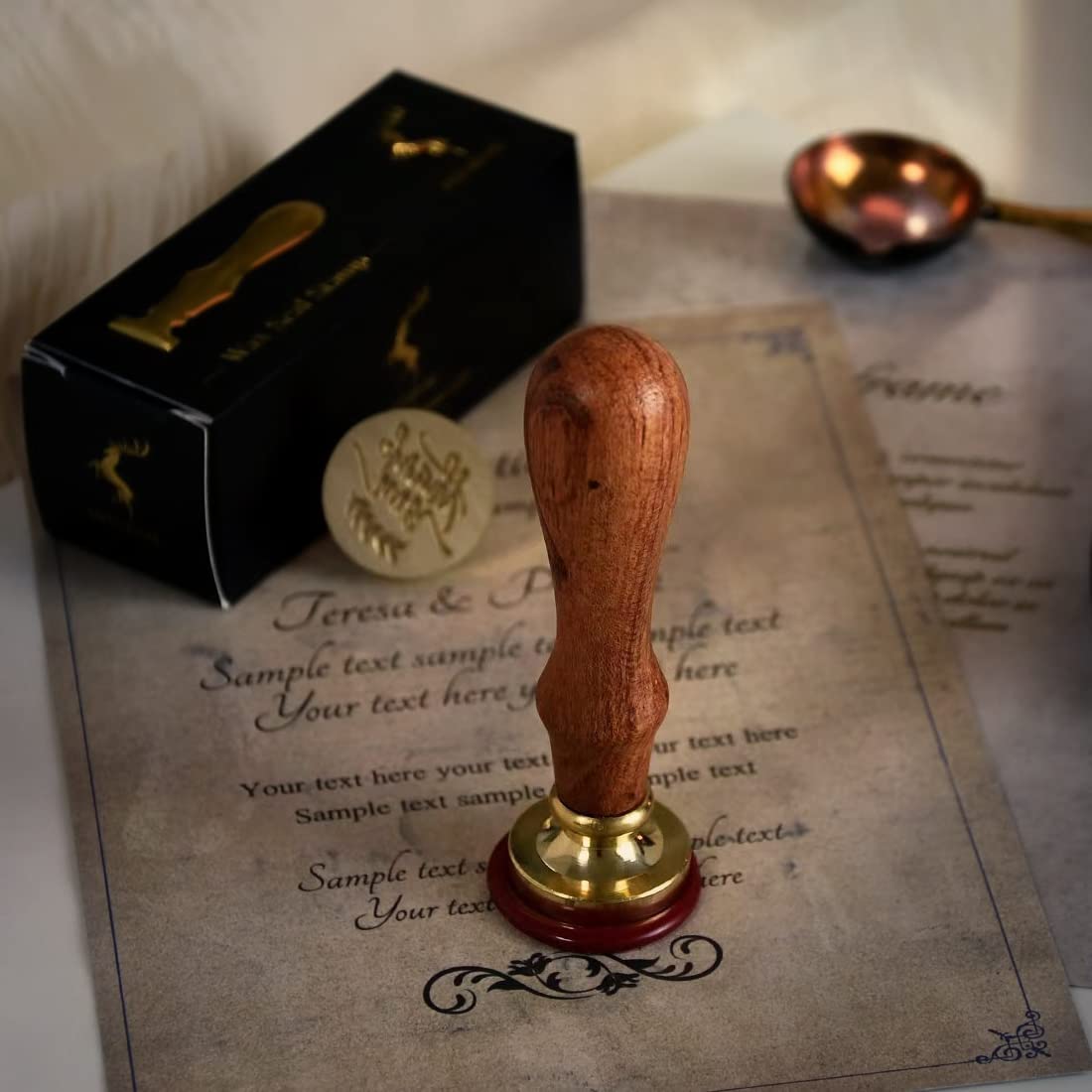 Changeable wooden handle Stamp - This stamp will come with a wooden handle, it will protect your finger from burning when making wax seal. In addition when you want to change the design, you just need to screw off the brass head and change to the design what you need, easily done.