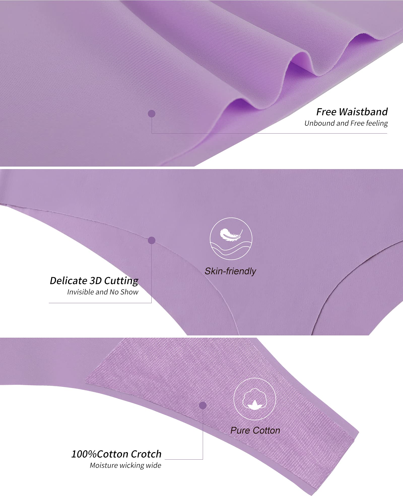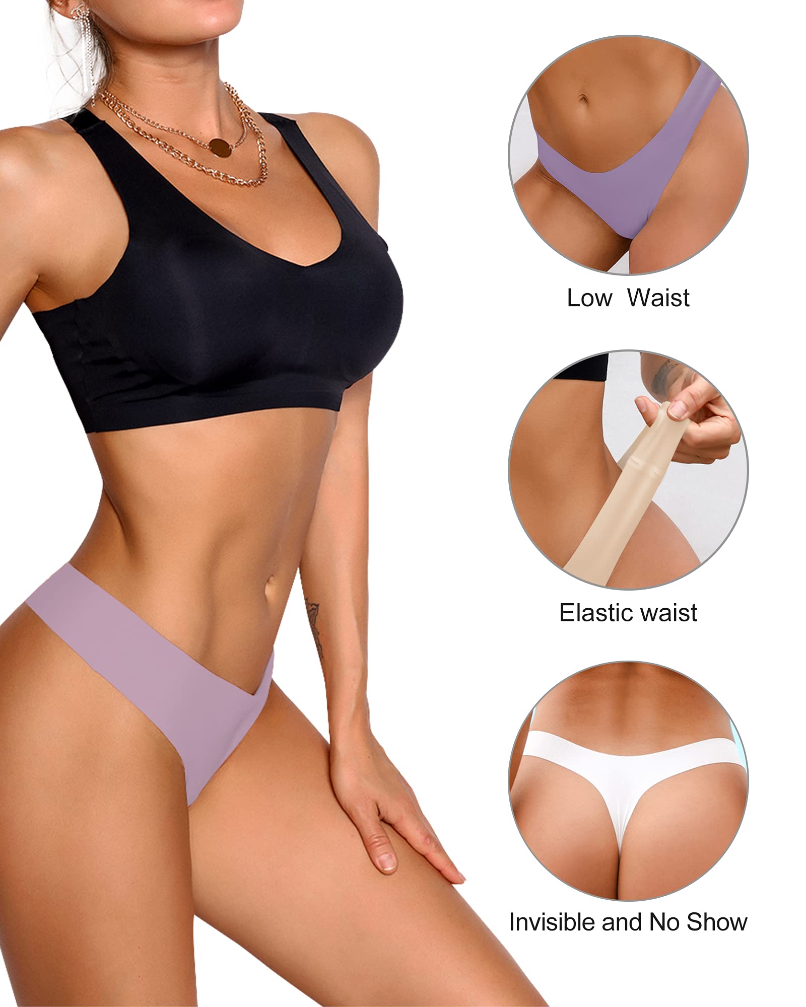 DESIGN:Low waist,ultra stretchy seamless panties thong with cotton liner.Tag-less design and seamless eliminates chafing or pinching while minimizing no show panties lines.