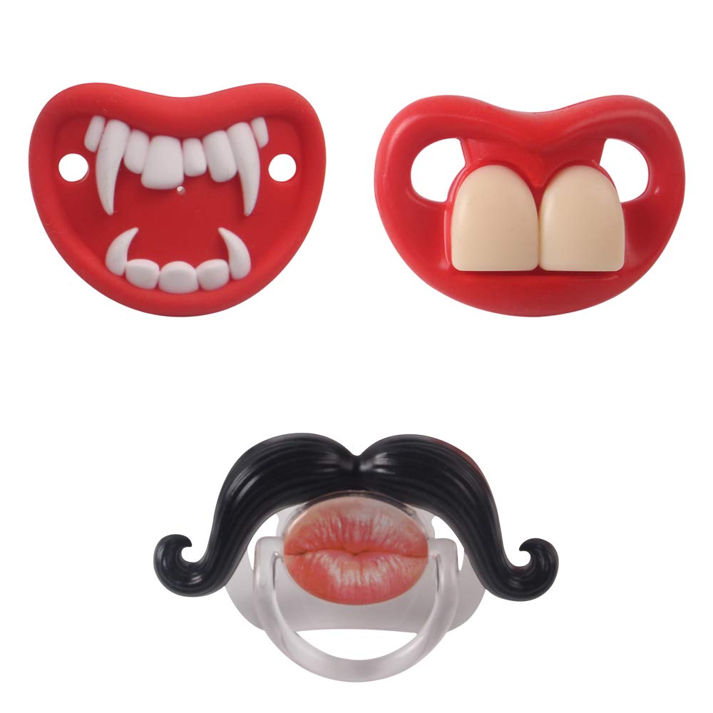 Funny Shape: Funny baby pacifiers are include 2 different design teeth pacifiers and gentleman mustache pacifier, Silly but sure to make you laugh