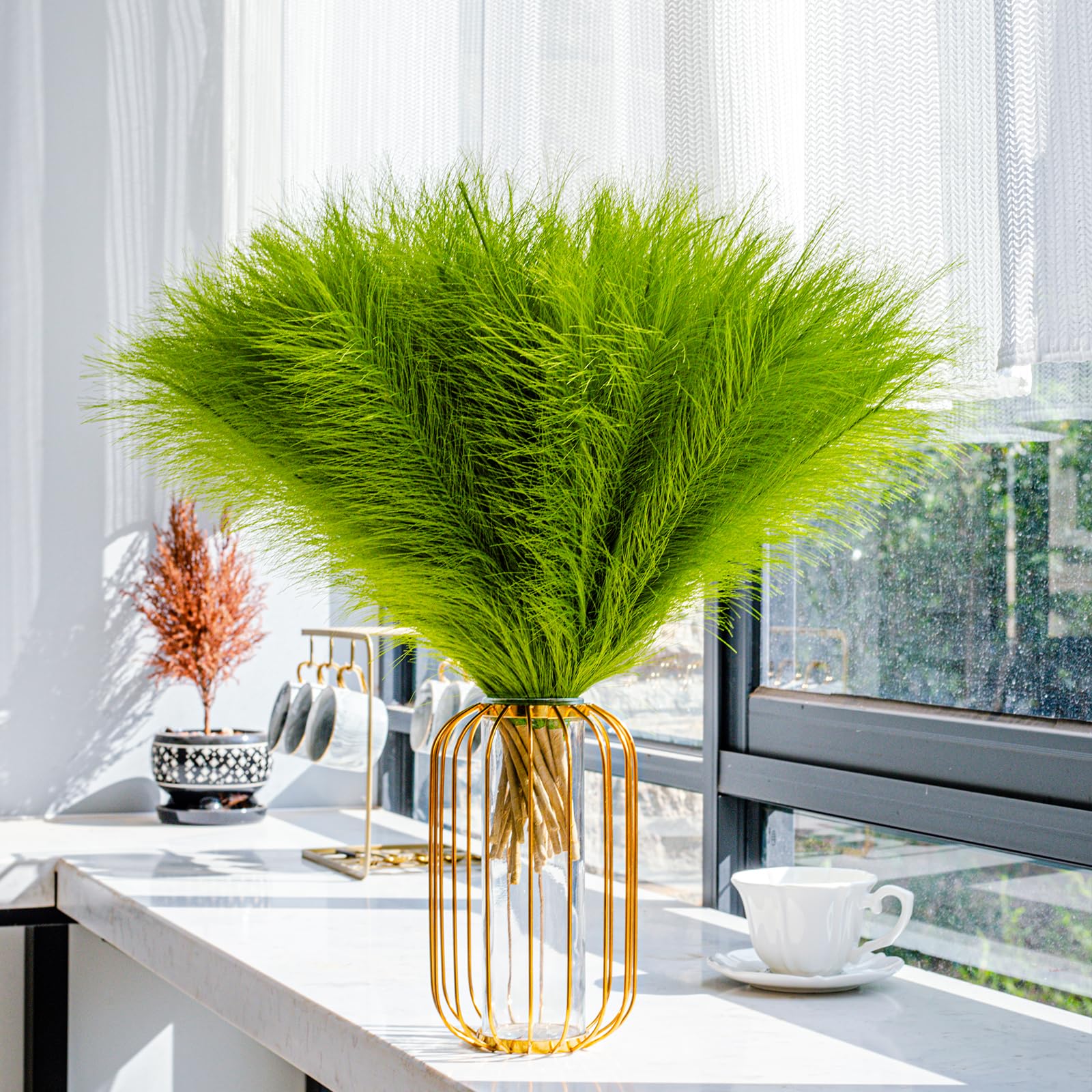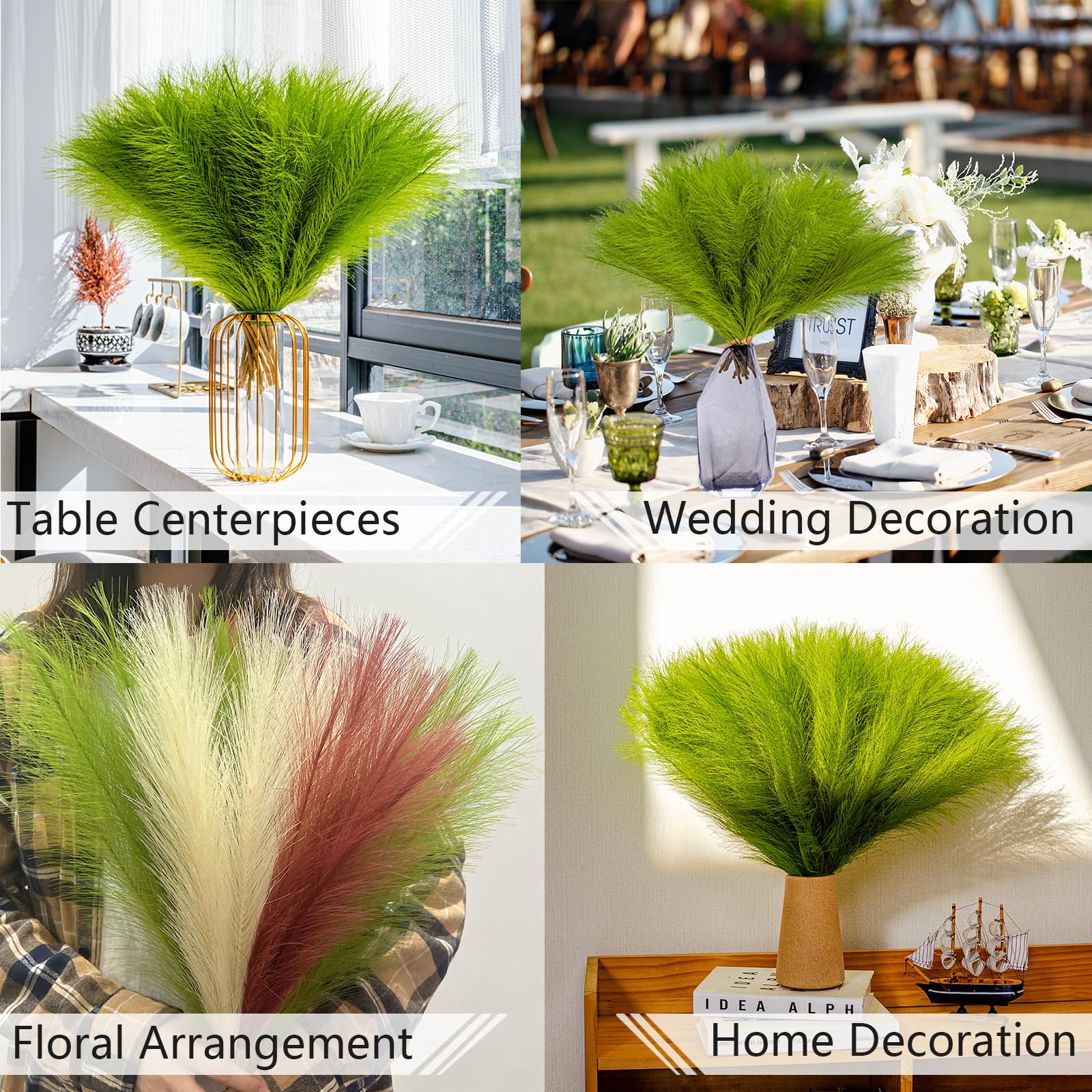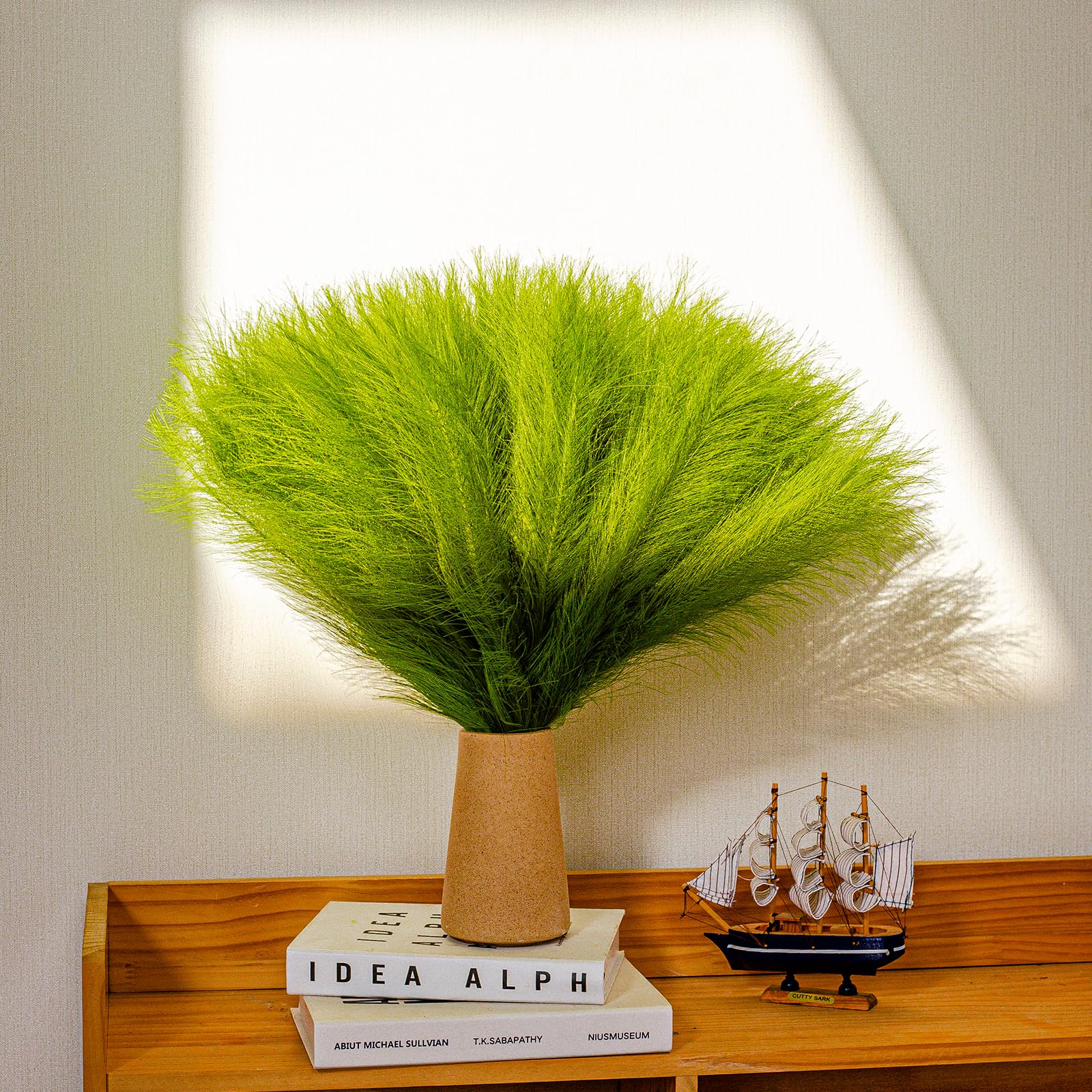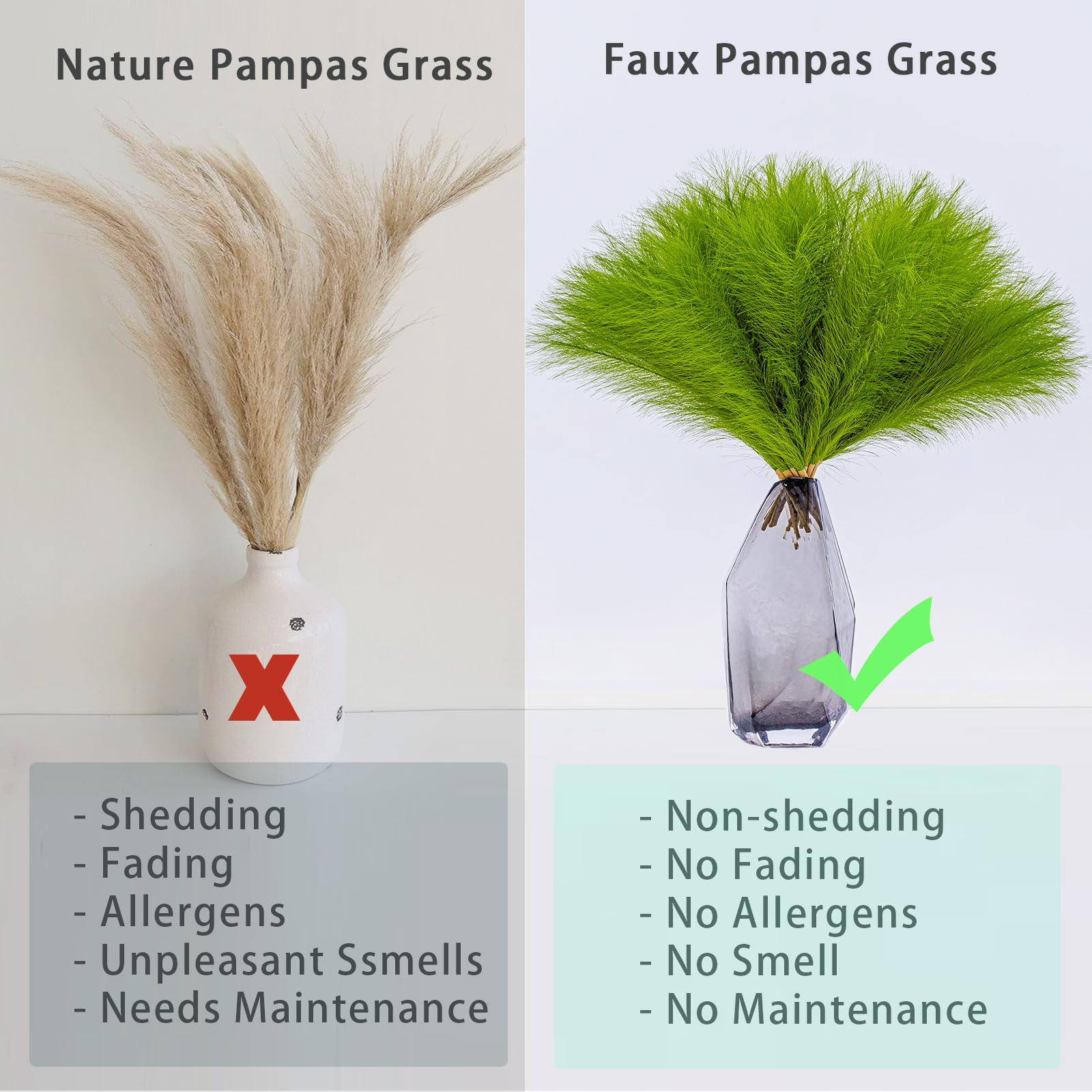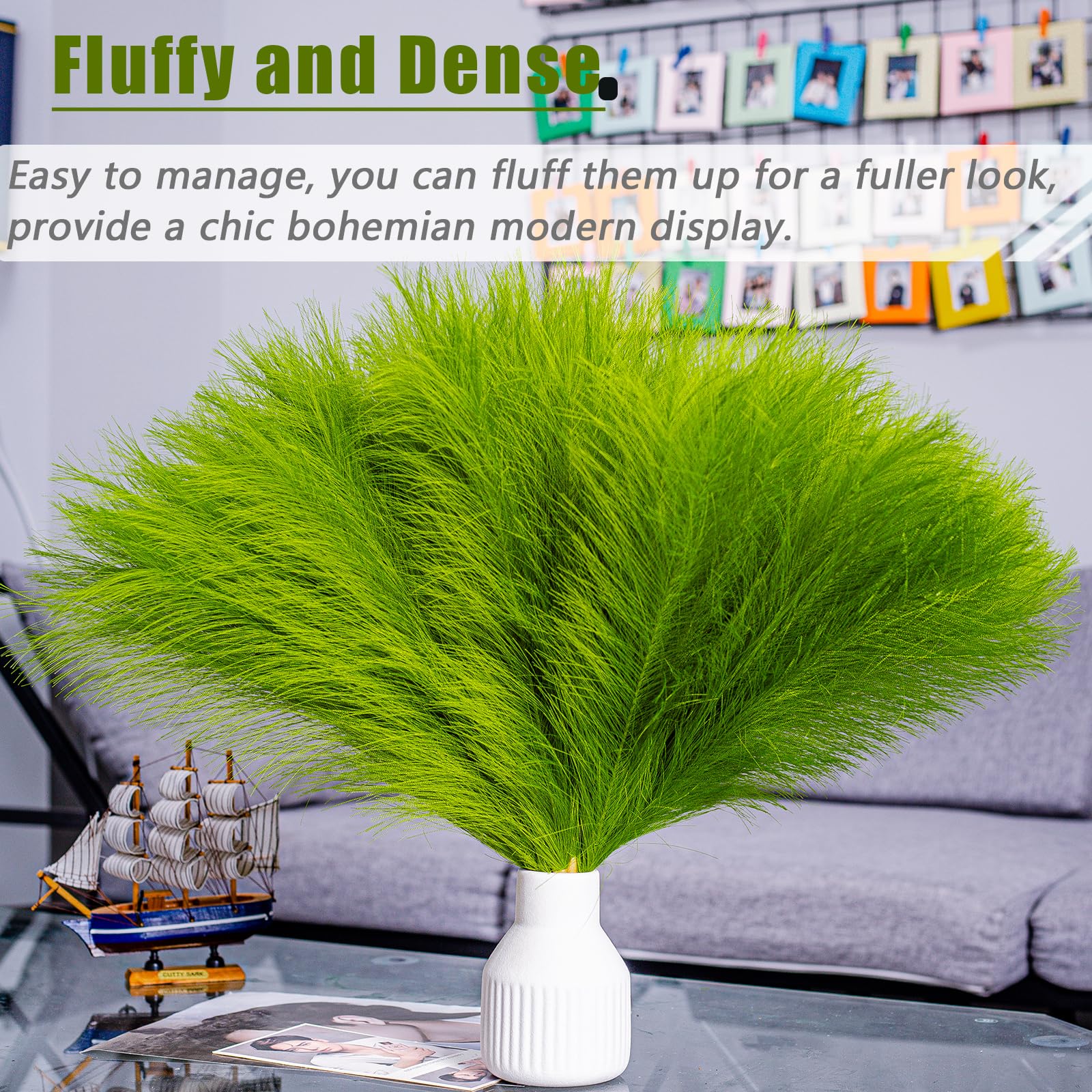 【Fluffy & Non-fading】Different from natural dried pampas grass, artificial pampas grass will not shed or fade away through out time, doesn't deform, is fluffy and dense, is easy to manage, you can fluff them up for a fuller look, provide a chic bohemian modern display