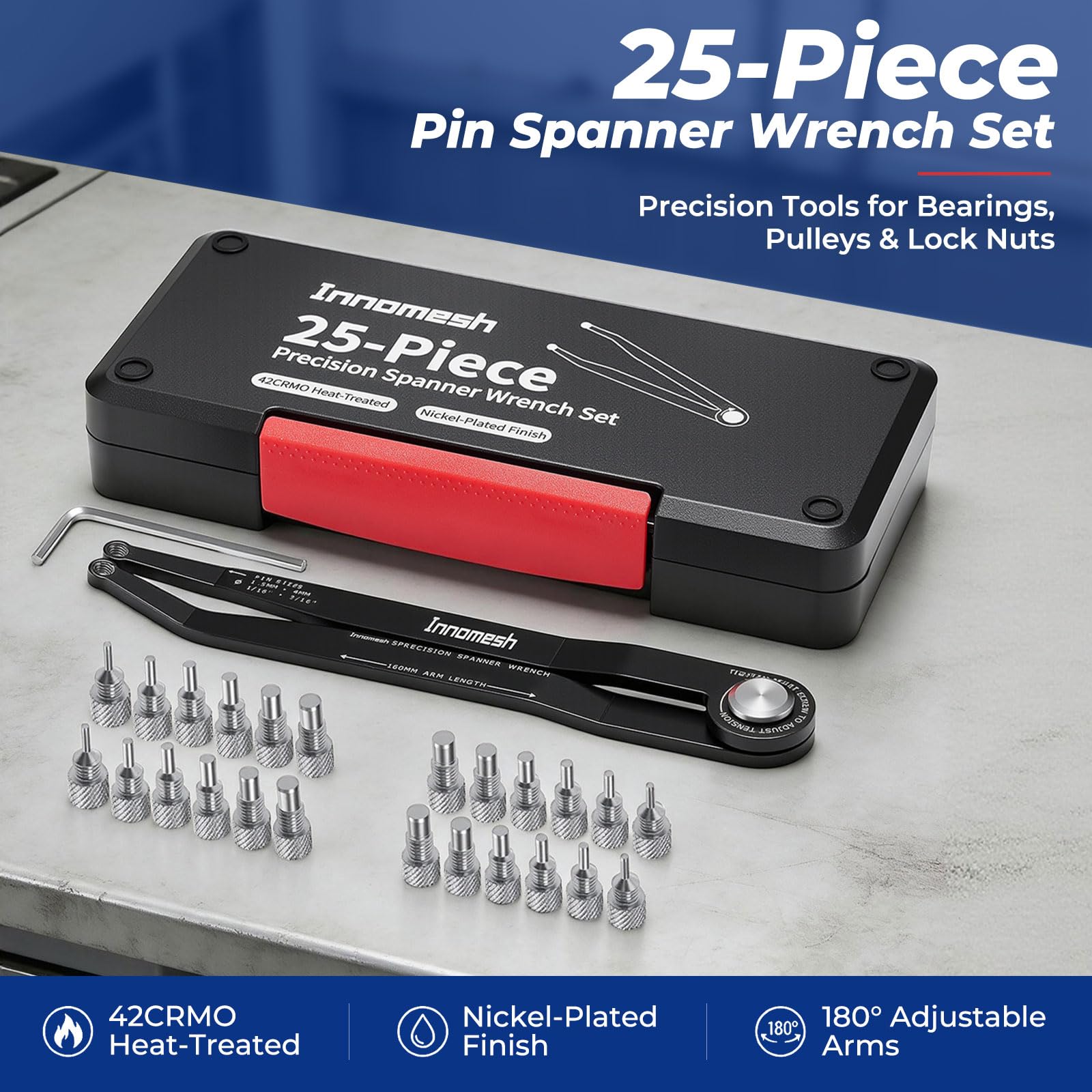 【Corrosion-Resistant Nickel Plating】Each pin wrench is nickel-plated for enhanced rust and wear resistance, ensuring long-lasting performance even in oily, humid, or high-friction environments.