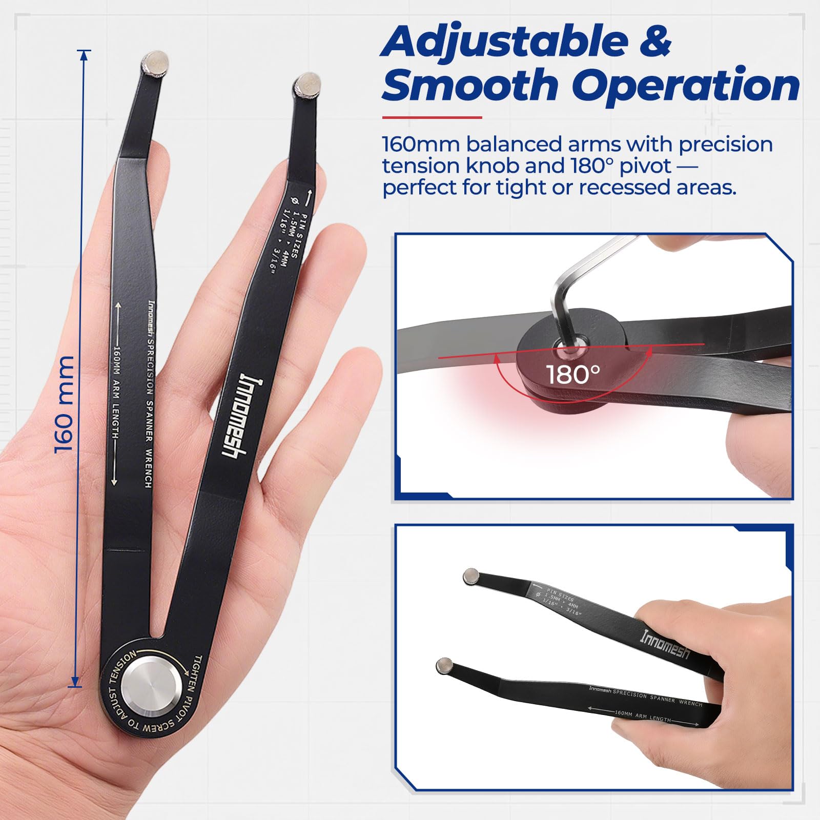 【Adjustable and Smooth Operation】160mm CNC-balanced arms provide optimal leverage.Features a finely machined tension knob and 180° pivoting arms that provide perfect control and leverage during operation—ideal for tight or recessed areas.