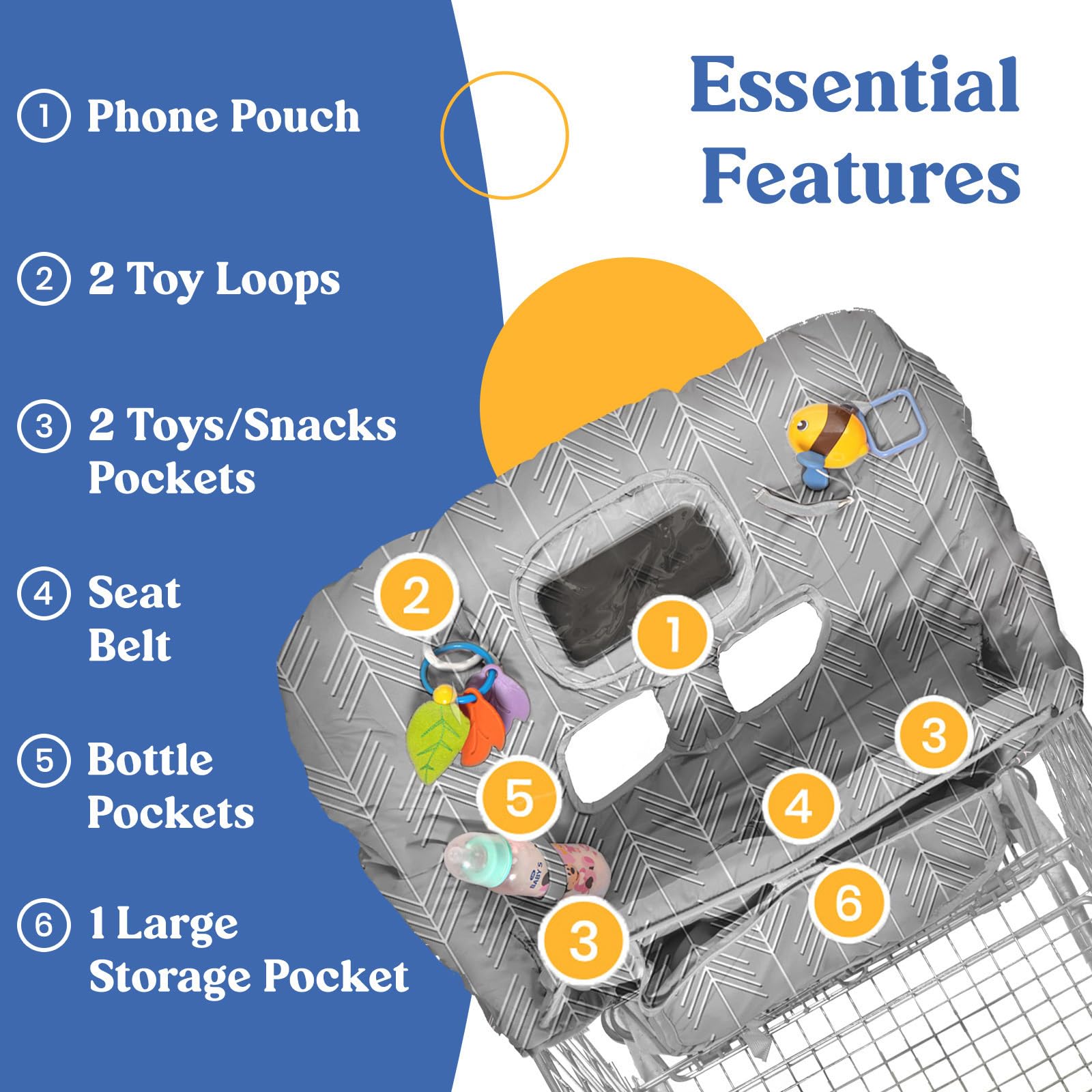🛒Perfect Hygienic 100% COTTON Cover for Your Baby: Make your shopping spree with your child easy & worry-free! Our versatile seat cover helps you save time in wiping & have more time for shopping. It provides a 360-degree protection to keep your toddler's hands, body and mouth from touching that dirty cart and the same goes for you. An absolute way of keeping baby items clean! Our shopping cart cover for baby makes it an ideal part of your baby items list!