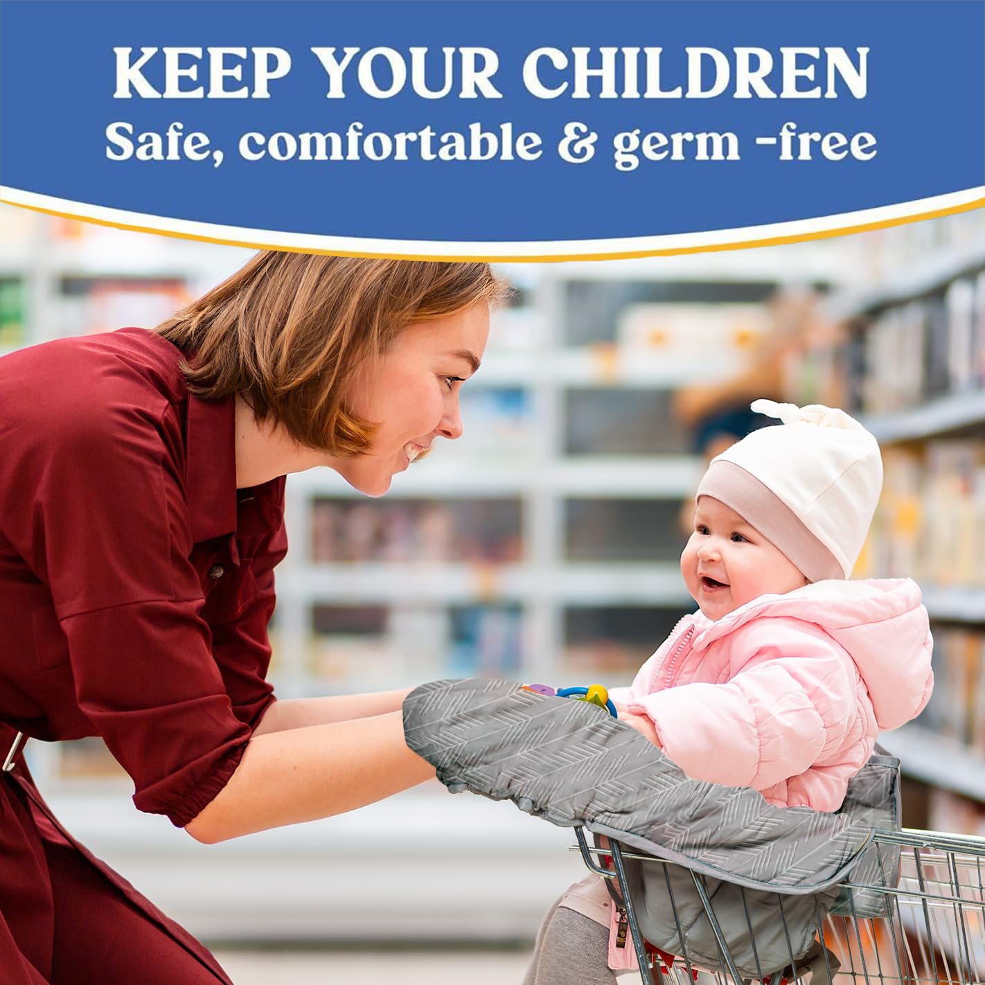 🛒Safety Always Comes First: The anti-slip bottom pad helps secure your baby in place, along w/ the safety belt harness & buckle so the cover stays in the cart. This adds to your peace of mind so that your child is safe & your baby supplies are securely intact.Our seat protector also fits most shopping cart sizes & types. So whatever your favorite grocery store is, carrying this Pillani shopping cart cover will always come in handy.Installation only takes a few seconds, even when carrying a baby
