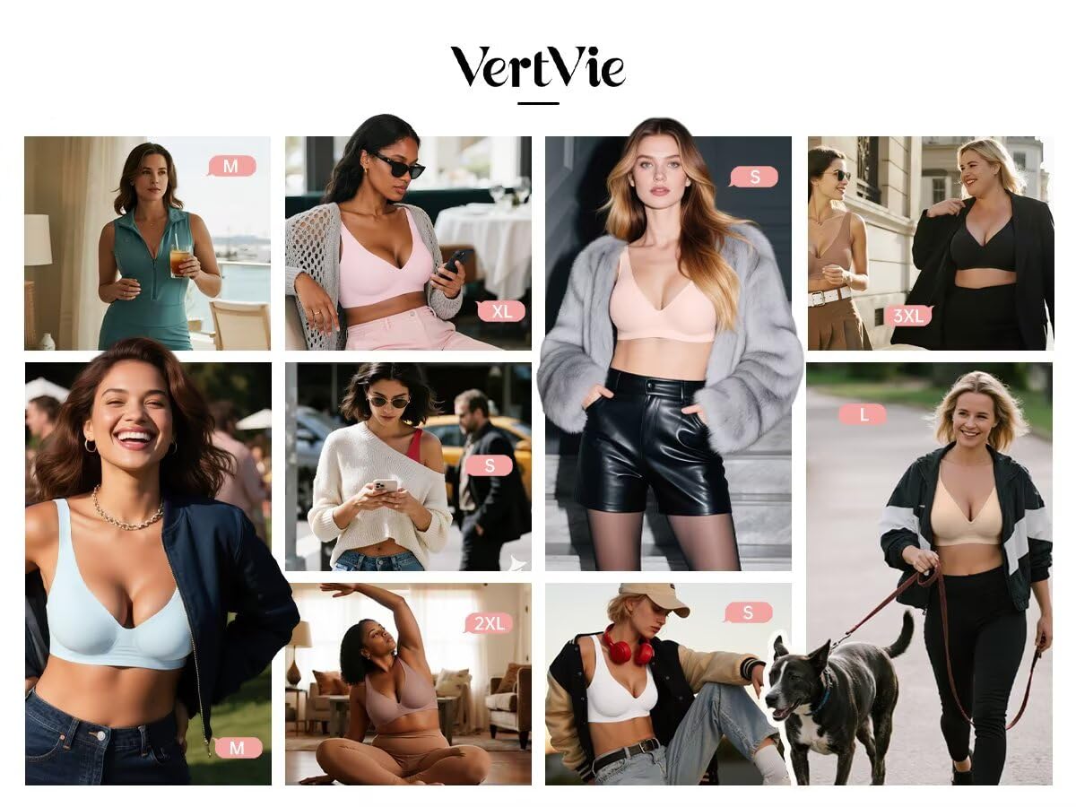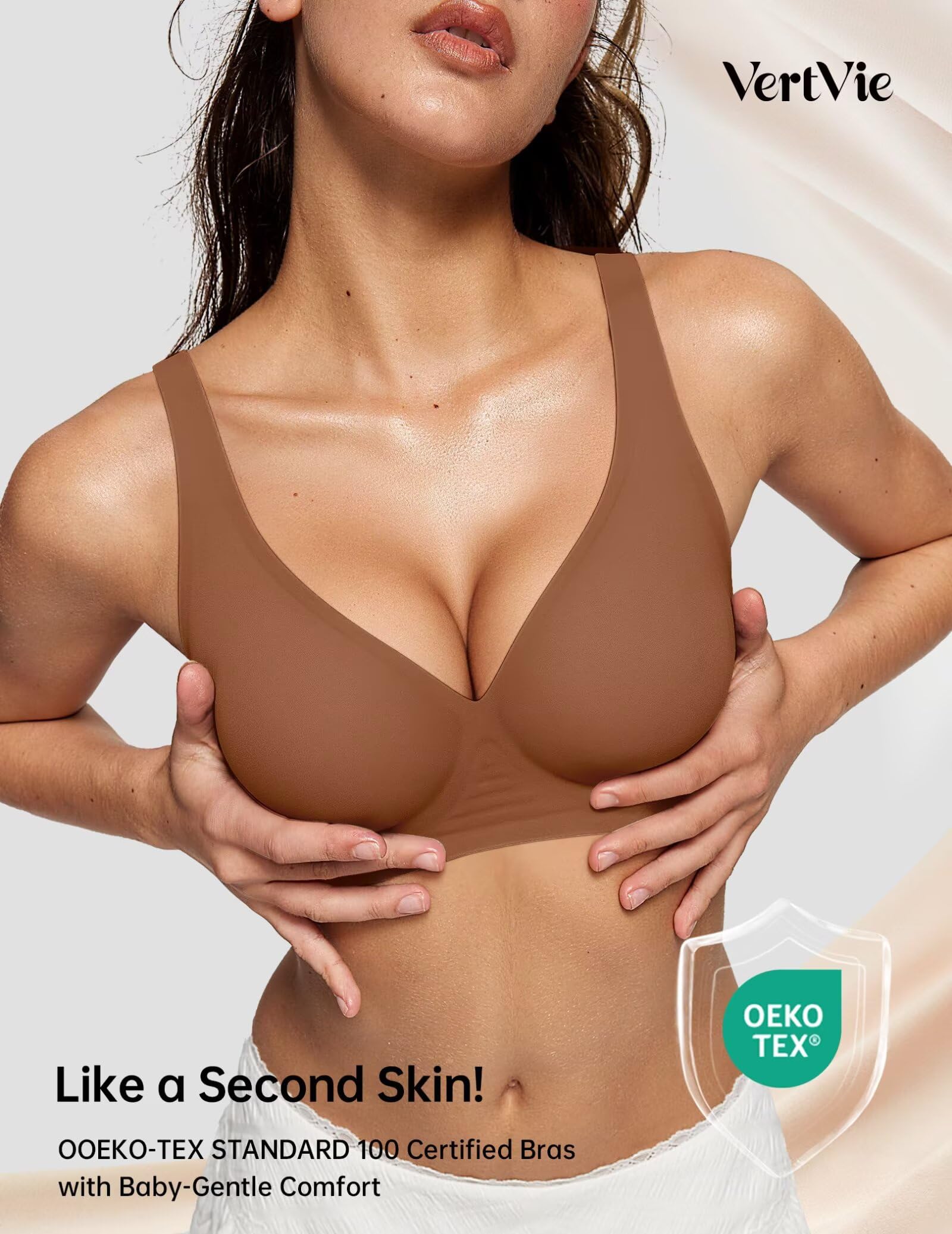 【Sexy Deep V Neck Bras】Discover the allure of our stylish plunge bra! Designed to enhance your natural shape, this full coverage bralette features a plunging neckline that offers a sexy, elegant look and enhances your natural cleavage. Its design makes it perfect for pairing with low-cut tops and dresses, adding a touch of sophistication to your outfit. The VertVie wireless comfort bra will be your new favorite style with its smooth, invisible look.