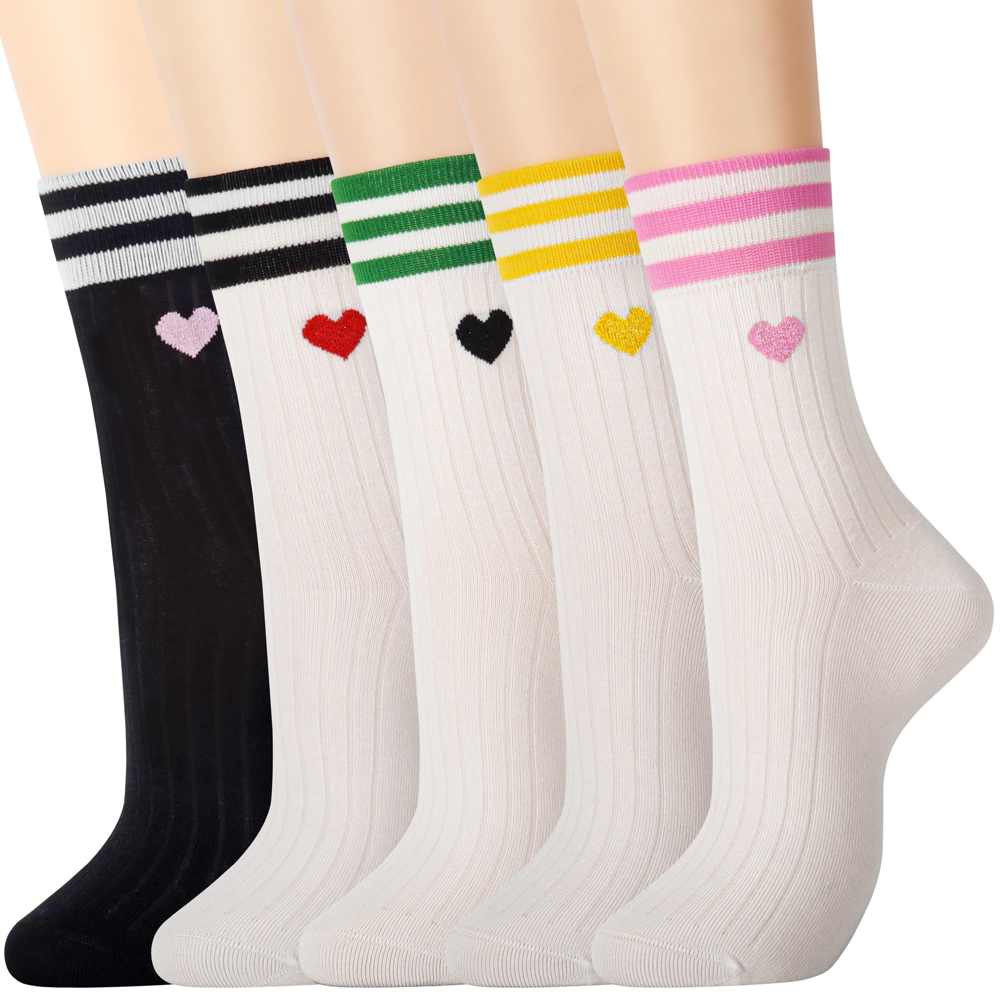 Size and Quantity: This women's cotton crew socks set includes 5 pairs, with a size range of US 5-8, suitable for most adult women and teenage girls for everyday wear.