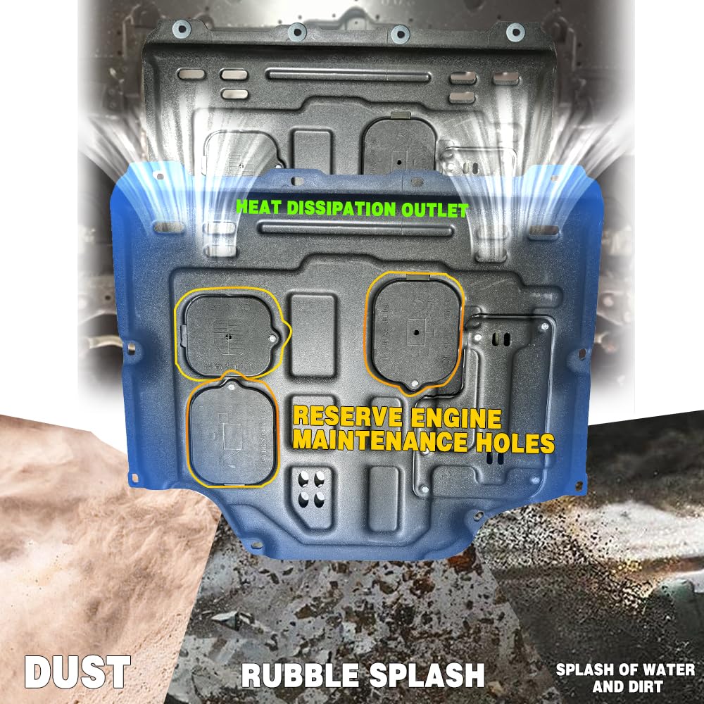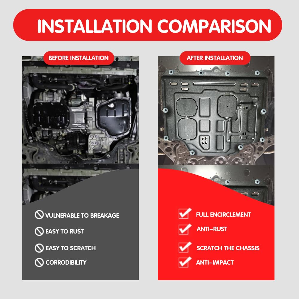 [Professional Design]After experimental data, it has been proven that it is 100% effective in protecting the engine and wiring, avoiding being hit or damaged; Prevent damage caused by long-term corrosion. Effectively avoiding the chassis being hit by stones during high-speed driving; When parking ,the bottom of the car is lifted by a large stone; After passing through muddy roads, the bottom of the engine was covered in mud, which corroded the circuit.