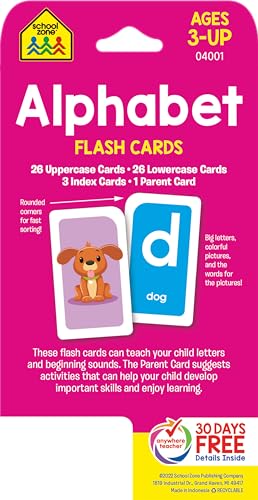 MAKE LEARNING FUN: 56 cards teaching the ABCs MEMORY and SKILLS: Letter-picture recognition, word-picture recognition, early reading PHONETICS: Listen and connect the letter sound with the associated word and picture EFFECTIVE LEARNING TOOL: Flashcards are time-tested and proven to boost retention TRAVEL ACTIVITY: Great on-the-go learning for road trips, or just going to Grandma's or a friends house Alphabet Flash Cards for preschoolers and kindergartners bring skills such as memory, listening, and beginning sounds. Children will get to know phonics and learn to connect letter sounds with objects: K is for Kite, for example. These ABC flash cards will also teach them that each letter is a symbol that can be memorized. This set is intended for children ages 3 and up. Alphabet Flash Cards help teach ABCs and letter-picture association to build essential pre-reading skills as part of the preschool curriculum. A Parent Card offers game instructions, extending the preschool fun and lessons, and hours of practice get kids ready to read and learn. Relatable illustrations make Alphabet Flash Cards both fun and practical. Build alphabet skills one letter and picture at a time. Drop these flash cards in a backpack or purse, and pull them out anywhere, anytime for fun or practice.
