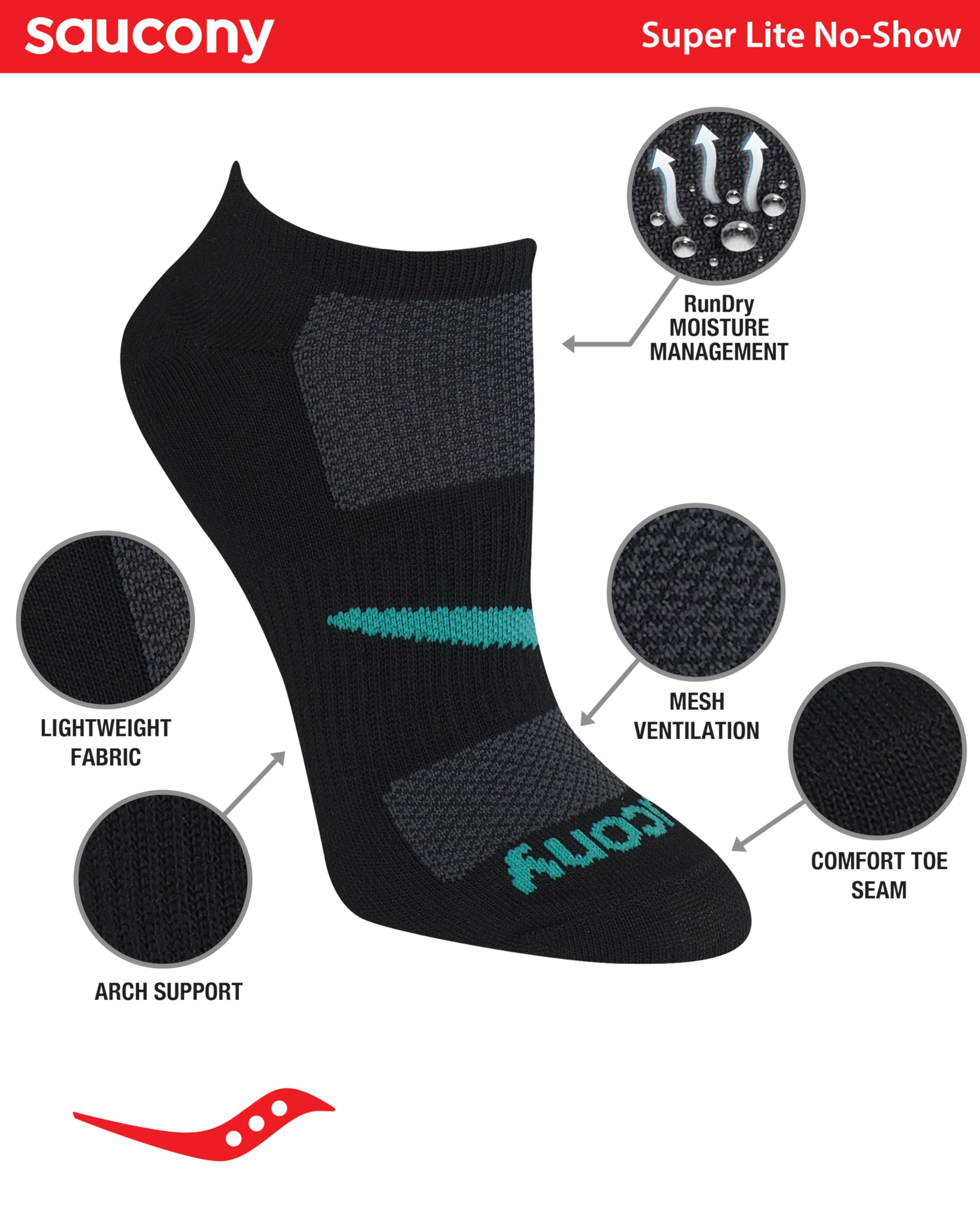 Description Saucony women's performance super lite no show socks is a perfect combination of comfort and support. Great for the toughest training sessions. Features arch support and air mesh venting for lasting comfort. Run for Good - Saucony was founded way back in 1898. Ever since, we have been loyal to the sport, building goodness into every product and inviting millions around the world to run with us. At Saucony, we exist for runners, Runners inspire us, bringing us new idea, force us to be better, they drive our design and engineering. They keep us competitive. They keep us hungry. They keep us honest. This focus and passion fuels us as we strive to create the best running shoes and apparel on the planet. We leave work each day knowing we’ve done everything to make runners live just a little better.