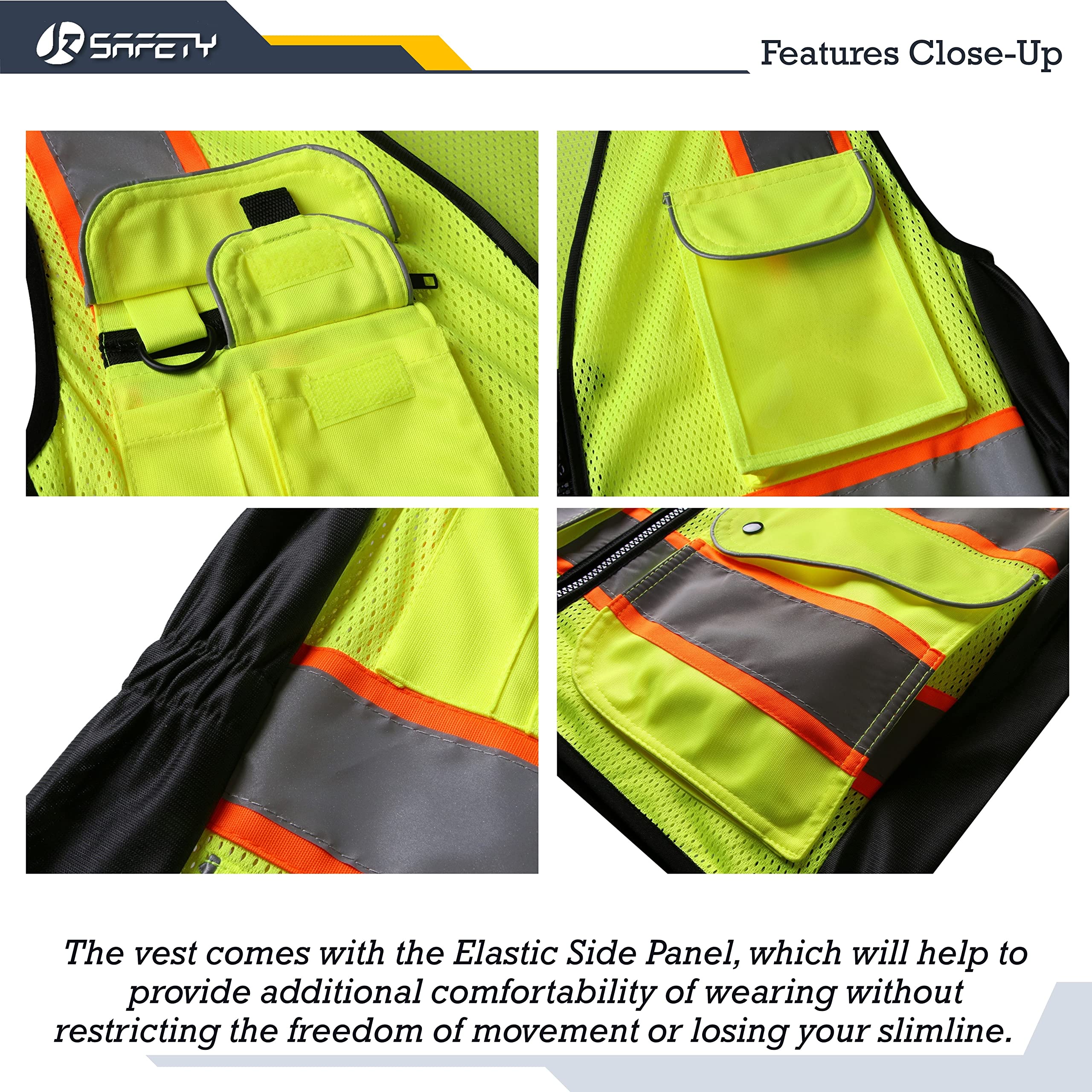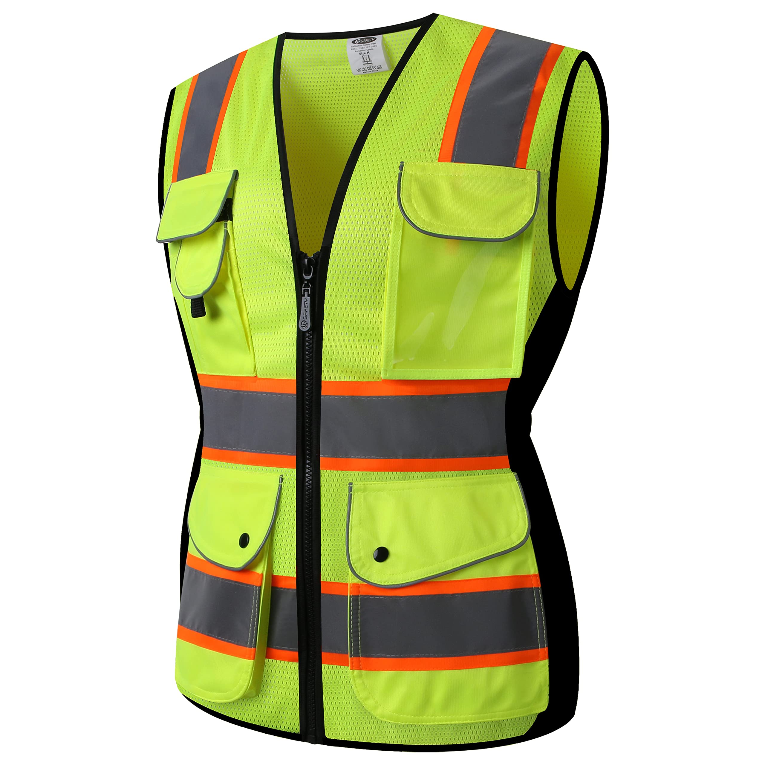 SAFETY WITH A TOUCH OF STYLE: JKSafety 9 Pockets Hi-Vis Reflective Safety Vest especially designed for our female colleagues. The 100% Polyester American Mesh Fabric dyed fluorescent color. Two elastic side panels not only can provide a streamlined cutting effect along the waistline but also maximize your mobility without losing your body shape. In addition, the vests are breathable, lightweight, and machine washable.