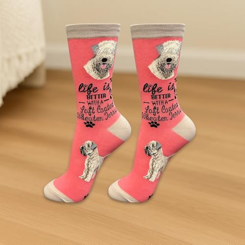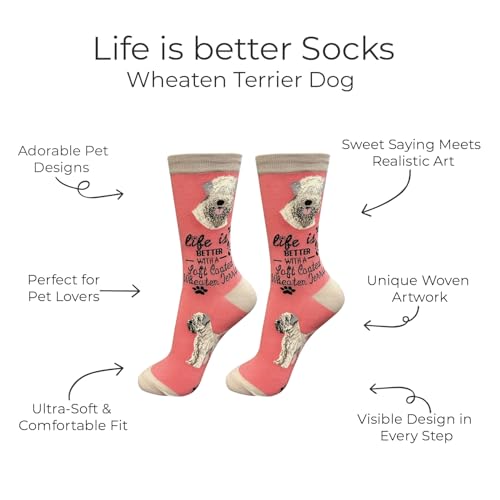 Description Introducing our collection of adorable and vibrant pet lover socks designed exclusively for pet lovers! These funny socks are the epitome of cuteness and novelty, guaranteed to bring a smile to your face. Big image of dog head woven on both sides on the socks and full body image woven on the bottom of the socks with a cute saying that says life is better with Dog. These socks are made in South Korea, These funny socks are made from 200 needle count machines which give life-like detail of your favorite pet. Step up your sock game with our adorable and hilarious Dog Socks, designed especially for pet lovers! These novelty socks are the perfect addition to your collection, featuring cute and silly designs that are bound to make you smile. Made with high-quality materials, these fun socks offer both comfort and style. They add a playful and fashionable touch to your everyday outfits, whether you're dressing up or keeping it casual. Whether you're a dog mom, a dog dad, or simply a dog lover, these socks are a must-have. With their delightful designs and comfortable fit, these socks are a fashionable treat for pet lovers and make great novelty gifts and dog mom gifts.