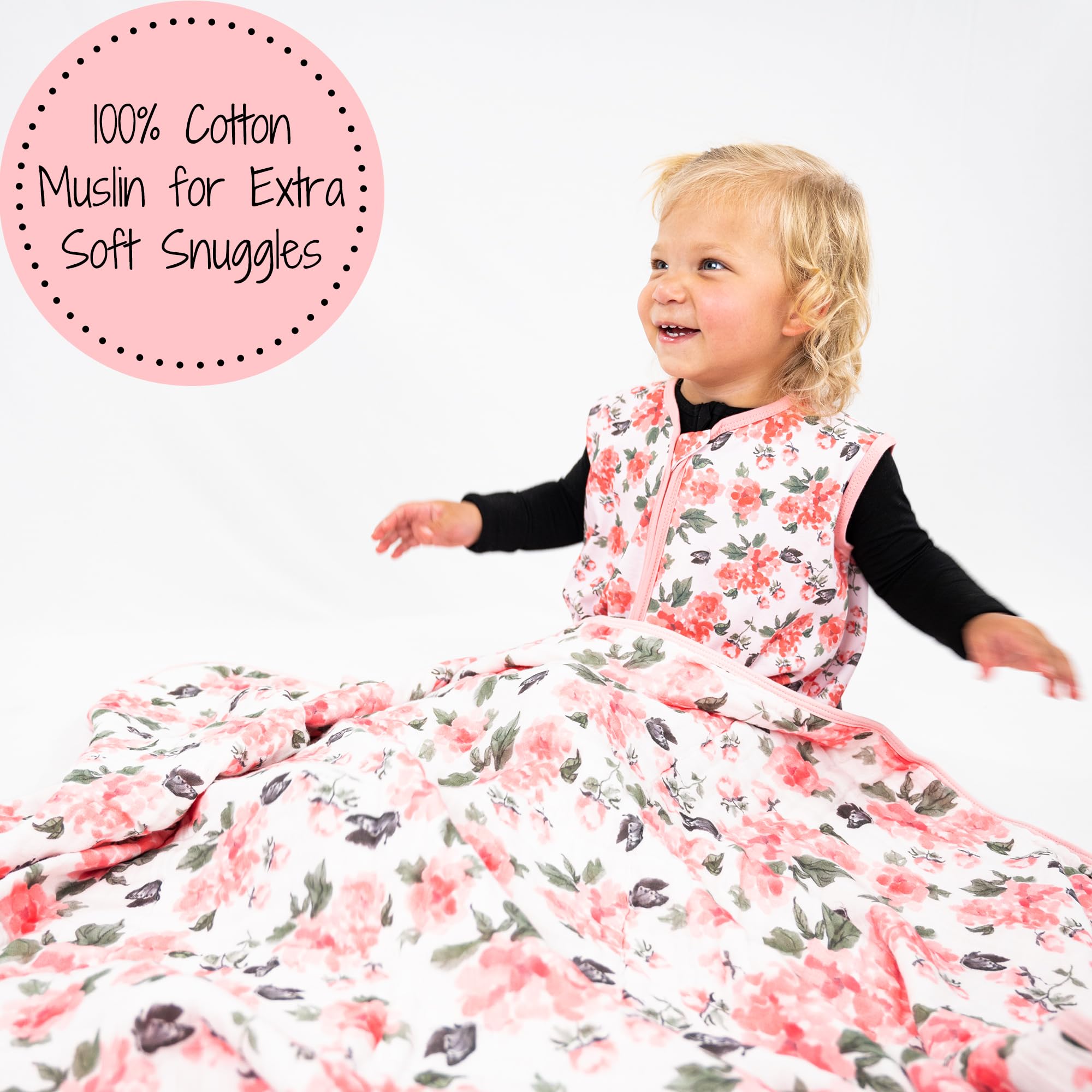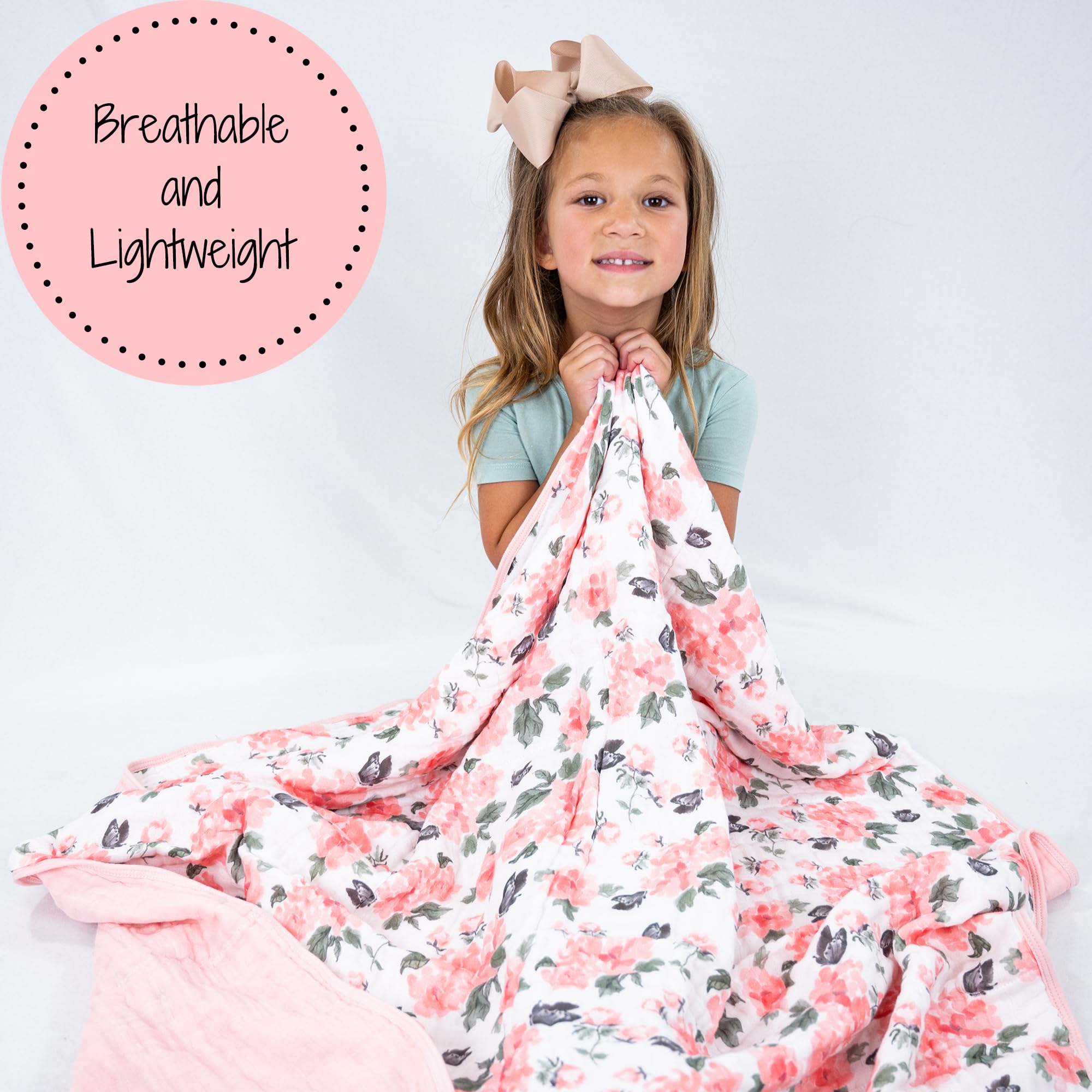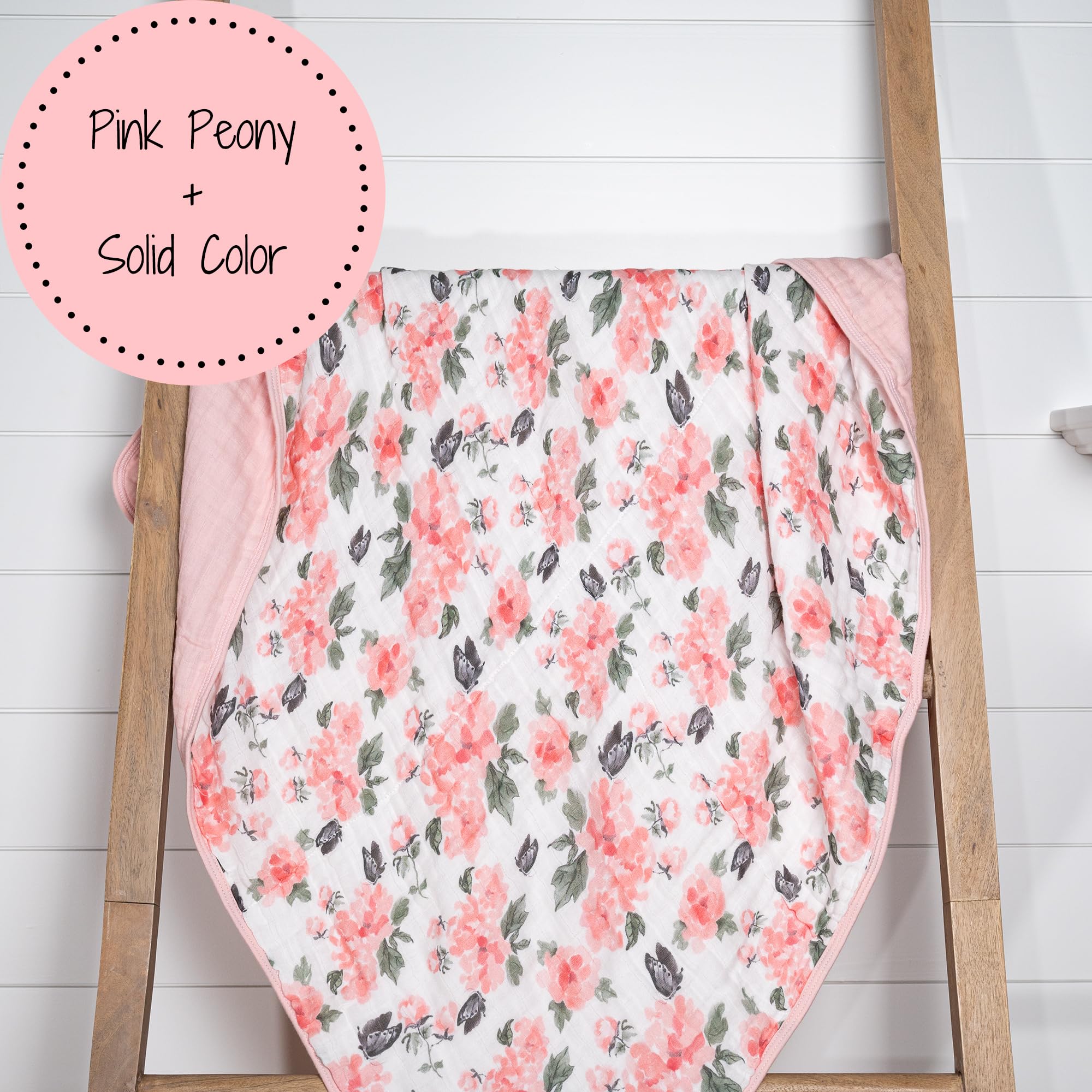 PINK PEONY PRINT - Soft pink peonies bloom across this baby blanket, wrapping your little one in breathable muslin comfort. A charming addition to any nursery that blends style with gentle coziness