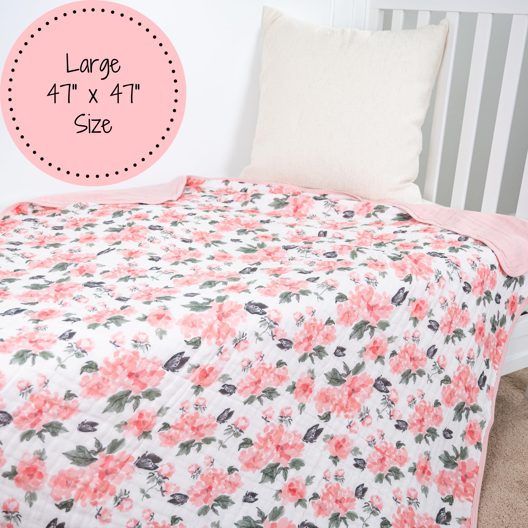 WARM AND 6 LAYER SNUGGLY BLANKETS - Wrap your baby in warmth with a LollyBanks 100% cotton muslin quilt, perfect for even the chilliest days. The generous 47x47 size is ideal for keeping your little one cozy from newborn to toddler, providing comfort and snugness as they grow
