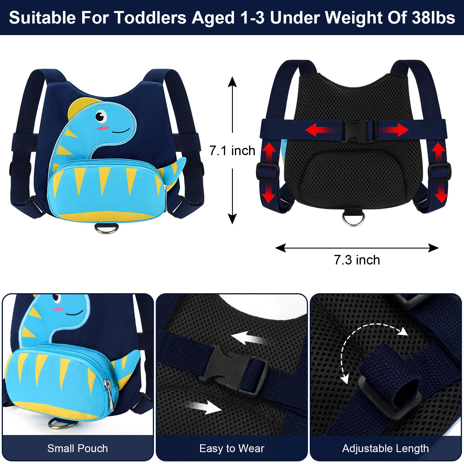 Adorable Design: Lovely and funny dinosaur pattern original designed keep kids innocent and stimulate imagination. Front extra pocket for snacks handkerchief, the equipped anti-lost rope or other mini necessities