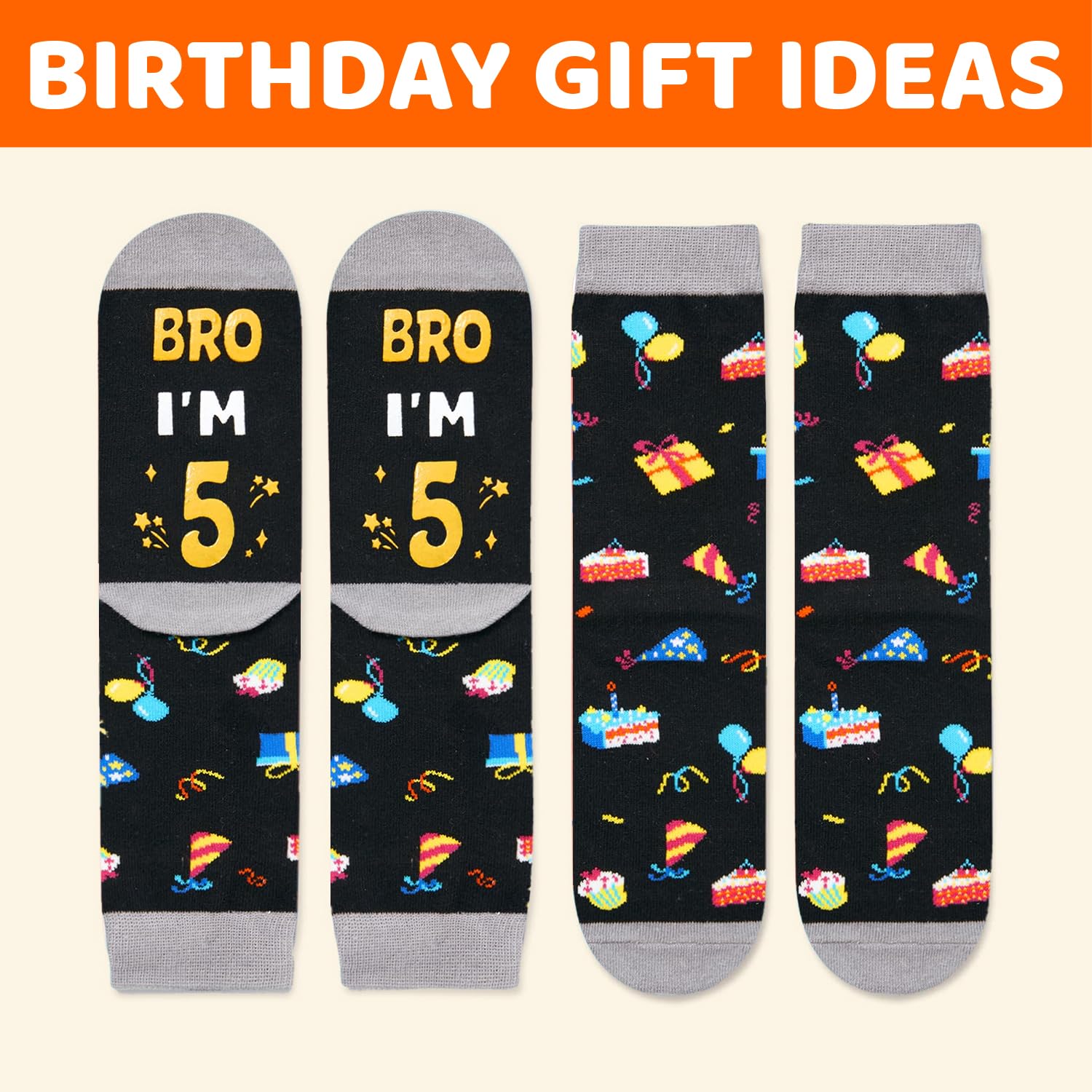 GIFTS FOR 5 YEAR OLD: Celebrate the joyous milestone of turning five with our stylish "BRO I’M 5" socks! This thoughtful gift is ideal for your child's special day. Make this occasion unforgettable with our distinctive, premium-quality sock presents.
