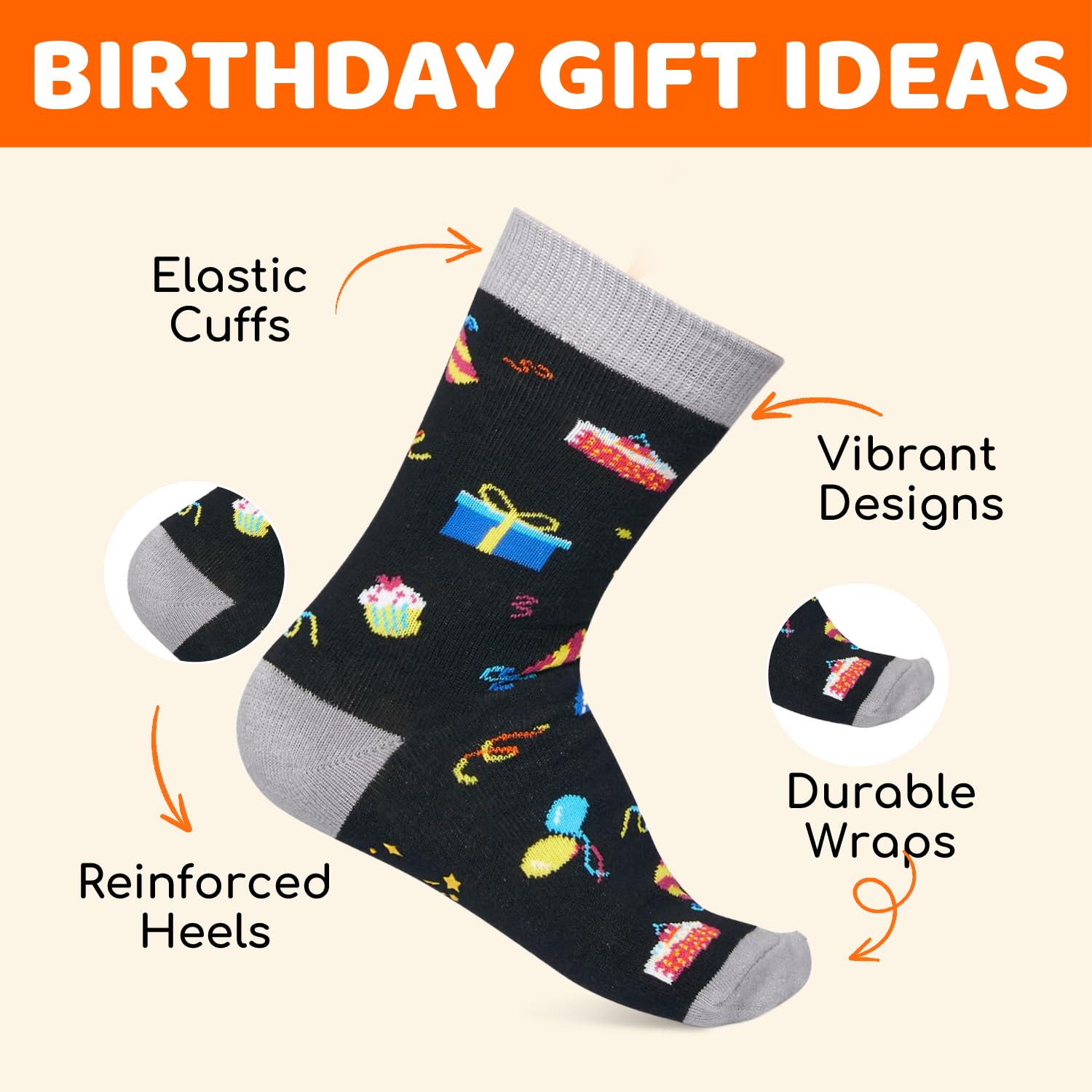 CHILDREN'S GIFT IDEAS: Unearth the ideal gift for children with our birthday socks. Perfectly suited for a 5th Birthday, Christmas, or as a distinctive White Elephant present, these socks are a thoughtful choice for a memorable and enjoyable gift.