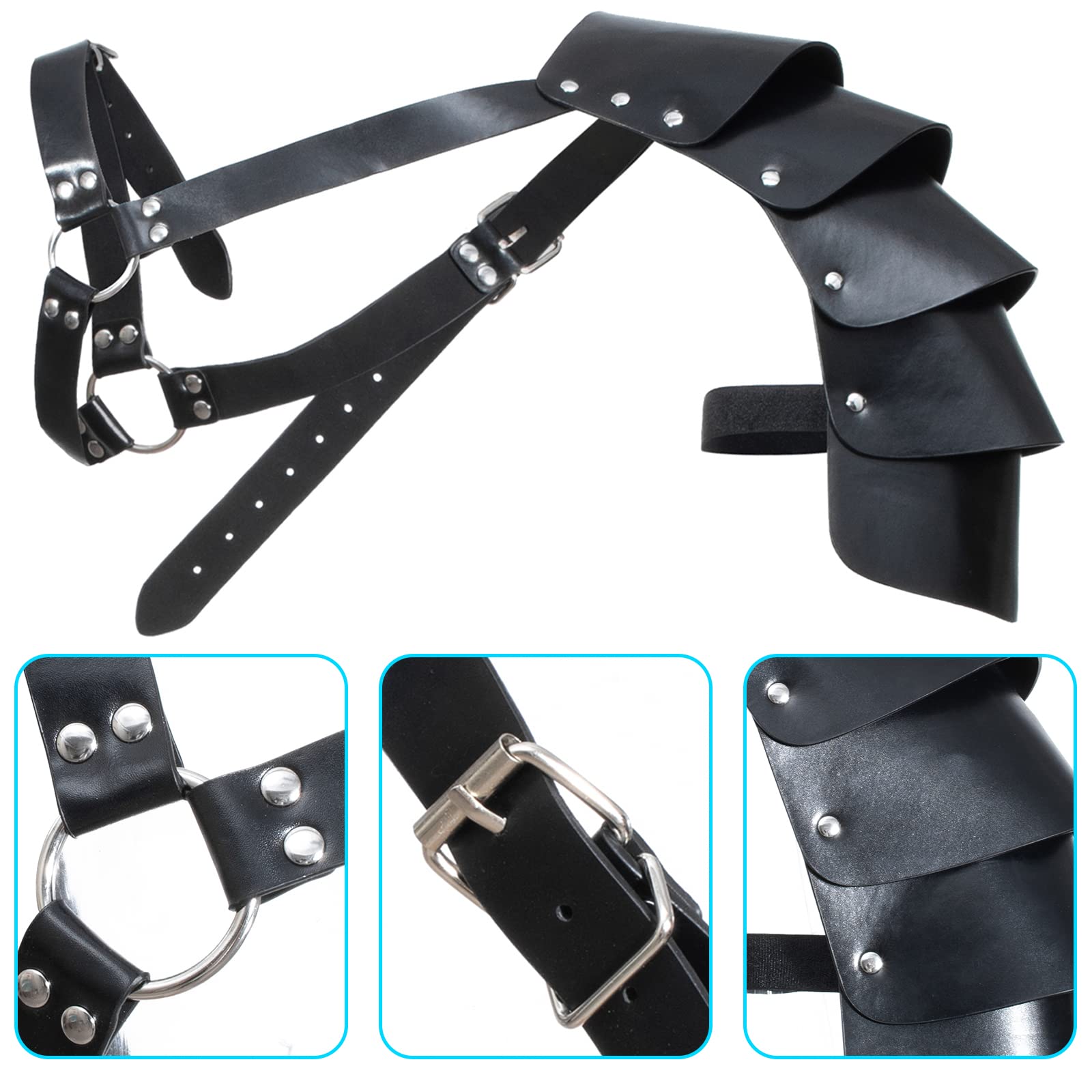Package includes: Type1: PU leather chest belt *1, PU leather renaissance medieval waist belt *1, PU leather punk gothic bracer*2, 4-piece set. Type2: PU leather single shoulder cover cape belt *1,PU leather renaissance medieval waist belt *1, PU leather punk gothic bracer*2, 4-piece set. Type3: PU leather single shoulder belt *1, PU leather punk gothic bracer*2, 3-piece set. Type4-Type8: Shawl scarf *1,PU leather renaissance medieval waist belt *1, PU leather punk gothic bracer*2, 4-piece set. Type9-Type10: PU leather renaissance medieval waist belt *1, PU leather punk gothic bracer*2, 3-piece set. Type11: PU leather single shoulder belt *1, Shawl scarf *1,PU leather renaissance medieval waist belt *1, PU leather punk gothic bracer*2, 5-piece set. Type12: PU leather shoulders cover cape belt *1,PU leather renaissance medieval waist belt *1, PU leather punk gothic bracer*2, 4-piece set. Type13: Shawl scarf *1, PU leather shoulders cover cape belt *1,PU leather renaissance medieval waist belt *1, PU leather punk gothic bracer*2, 5-piece set. Type14: PU leather single shoulder belt *1, Shawl scarf *1,PU leather renaissance medieval waist belt *1, PU leather punk gothic bracer*2, 5-piece set. Unisex medieval knight leather belt shawl men women's steampunk renaissance accessory half shoulder cape scarf buckle bracers sash armlet armband armor shrug retro no belt eyelets renaissance waist belt accessories cosplay party costume Faux leather shoulder dragonscale armor shrug belt cosplay party costume outfit renaissance medieval waist belt punk gothic bracer shawl scarf Armor armor is fully wearable and comfortably made.string ties make it fairly adjustable to different arm sizes.