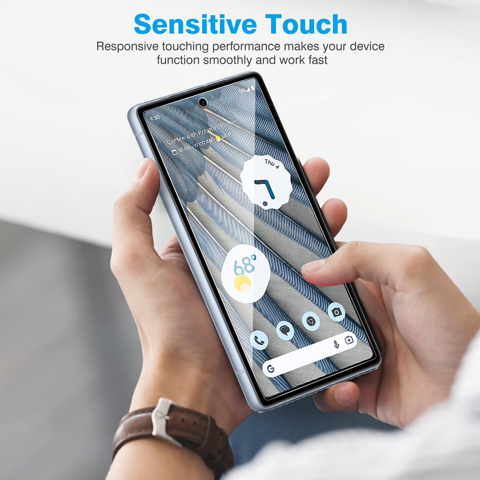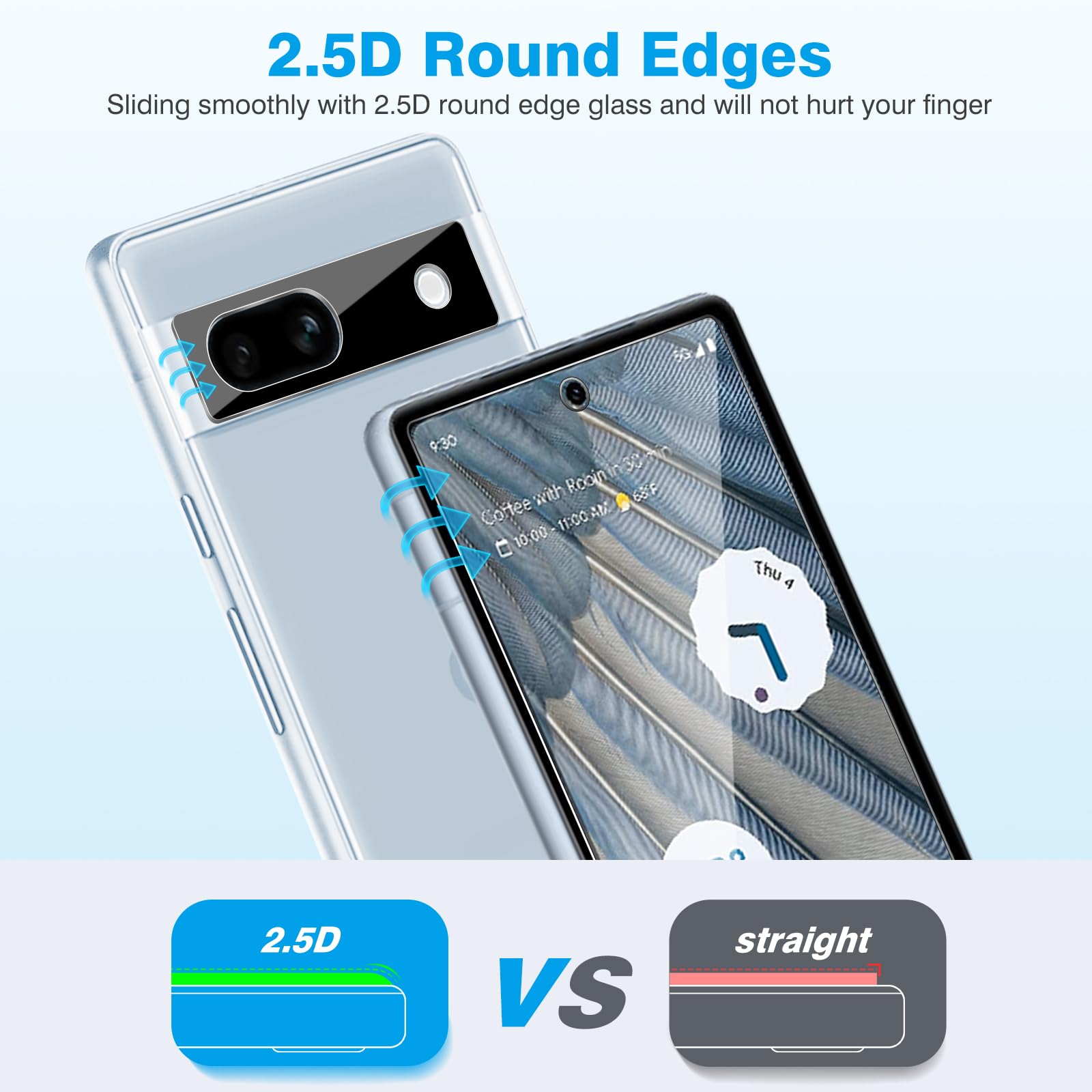 Scratch Resistant: This Pixel 7A screen protector and camera lens protector are made up of industry-grade 9H hardness tempered glass, which can effectively protect the screen and camera from accidental scuffs and scratches by knife, keys and other sharp objects