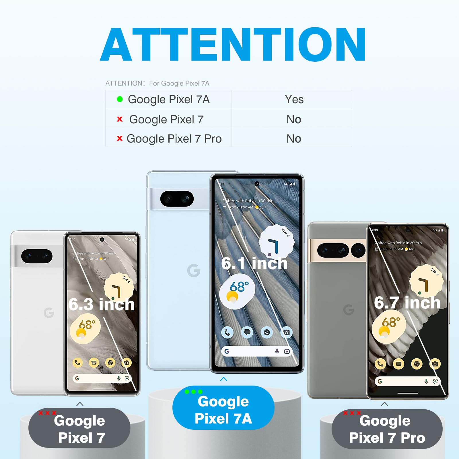 Compatible Model: This screen protector and camera lens protector only compatible with Google Pixel 7A 6.1 inch (2023 released), NOT for any other phone models like Pixel 7 (6.3 Inch) /Pixel 7 Pro (6.7 Inch)