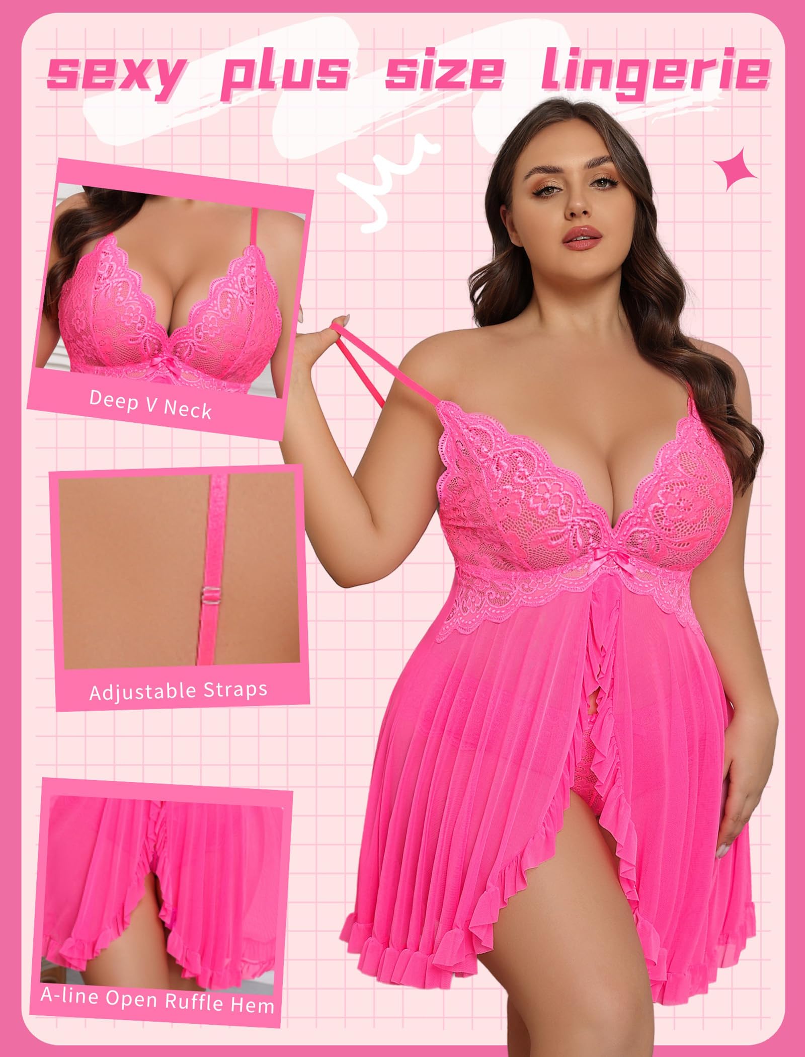【Unique Design】This plus size sexy lingerie is featuring deep V-neck, adjustable spaghetti straps. The details of the lingerie fully meet your imagination.