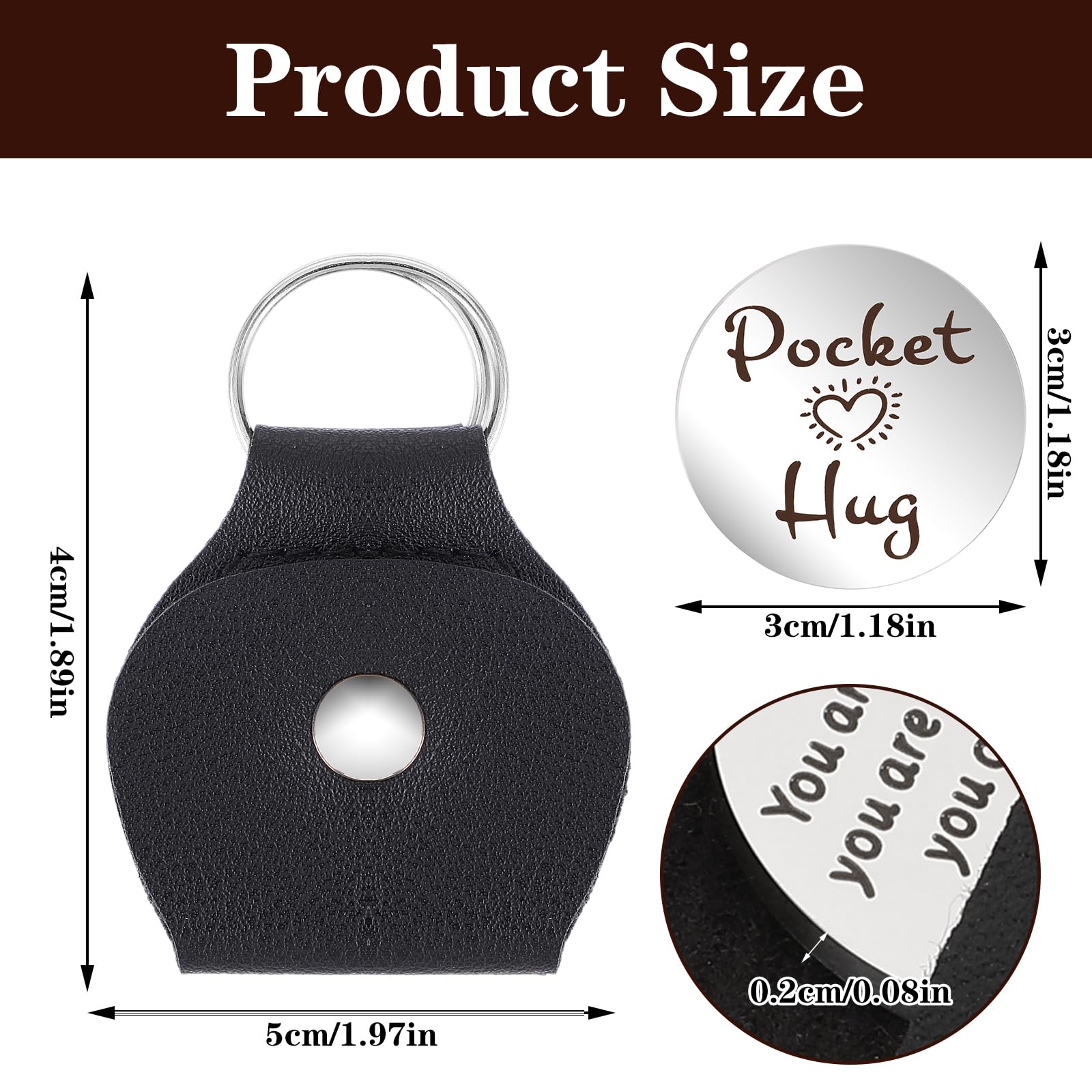Size and Component: The pocket coin holder measures approximately 3x3x0.2 cm/1.18x1.18x0.08 inches, portable, lightweight, strong, and sturdy. You will receive a stainless steel pocket hug token and a black PU leather case.