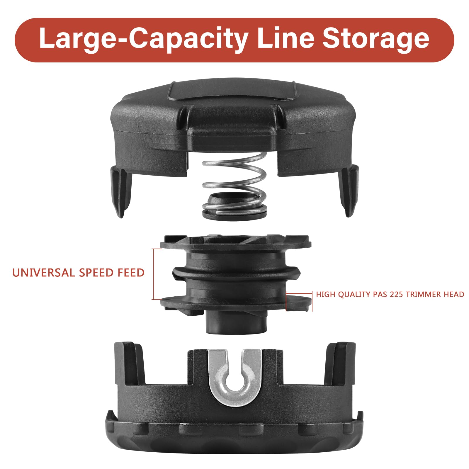 Our weed eater trimmer head replacement is compatible with Echo PAS-210 PAS-211 PAS-225 PAS-225VP PAS-225VPB PAS-230 PAS-231 PAS-260 PAS-261 PAS-265 PAS-266 PAS-280 PAS-2100 PAS-2400 PAS-2601 trimmer head straight shaft trimmer.
