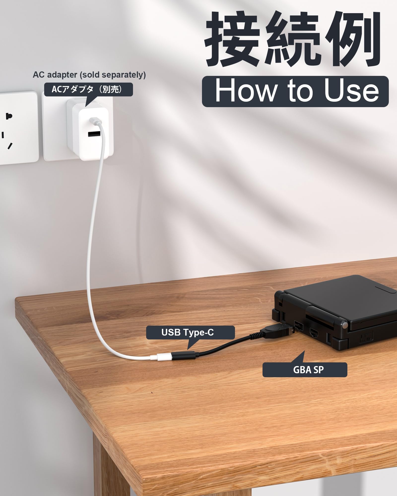 【Charge Anywhere with USB-C】 Works with any USB-C power source you have! Power up your GBA SP from a laptop, car charger, portable power bank, or any standard USB wall adapter. Total charging freedom, at home or on the road.
