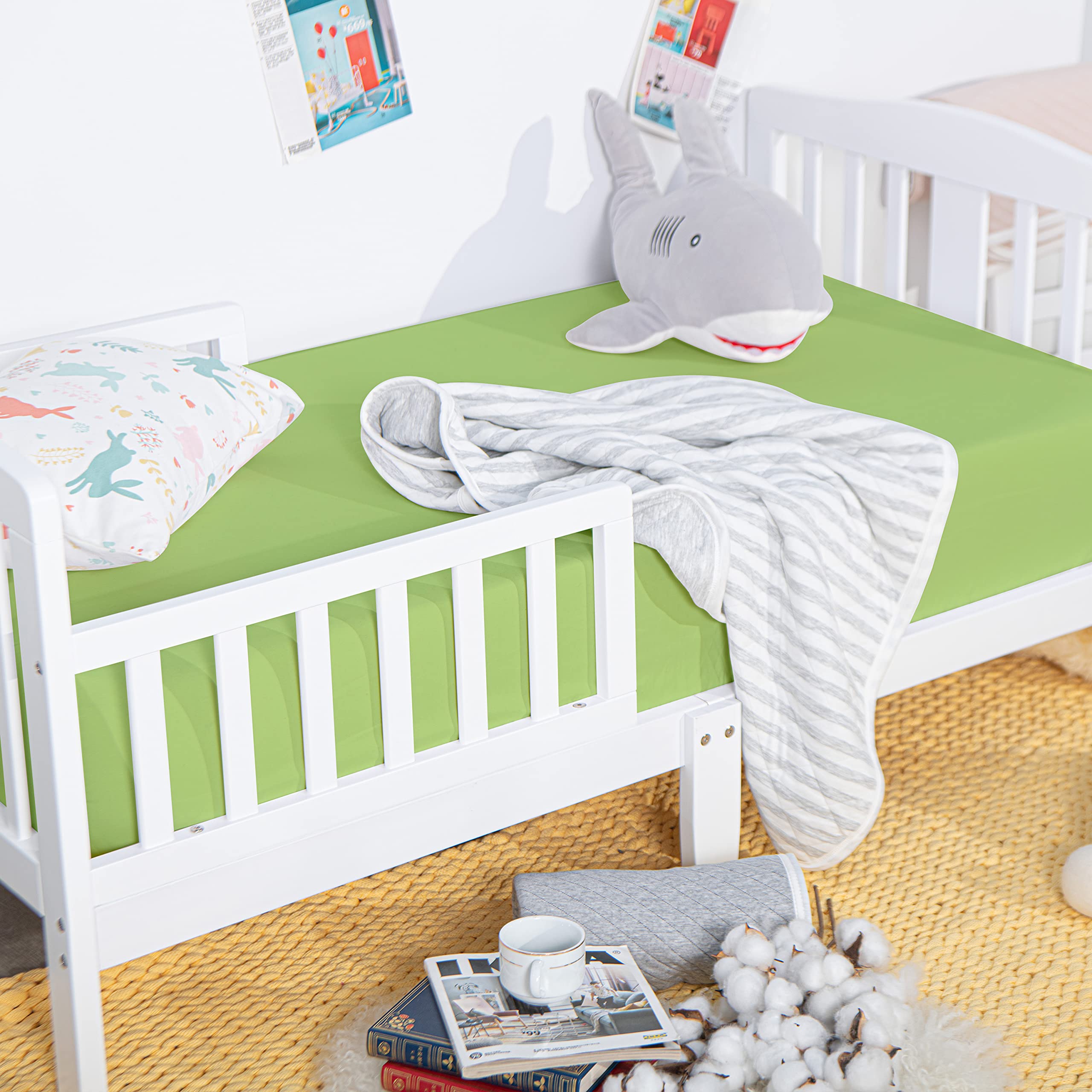Soft, fade-resistant microfiber toddler fitted sheet: Made of nice quality microfiber fabric, smooth and soft, providing your baby and toddler a cozy and quiet sleep or daily rest. This microfiber fitted sheet is fade resistant and machine washable for easy care.