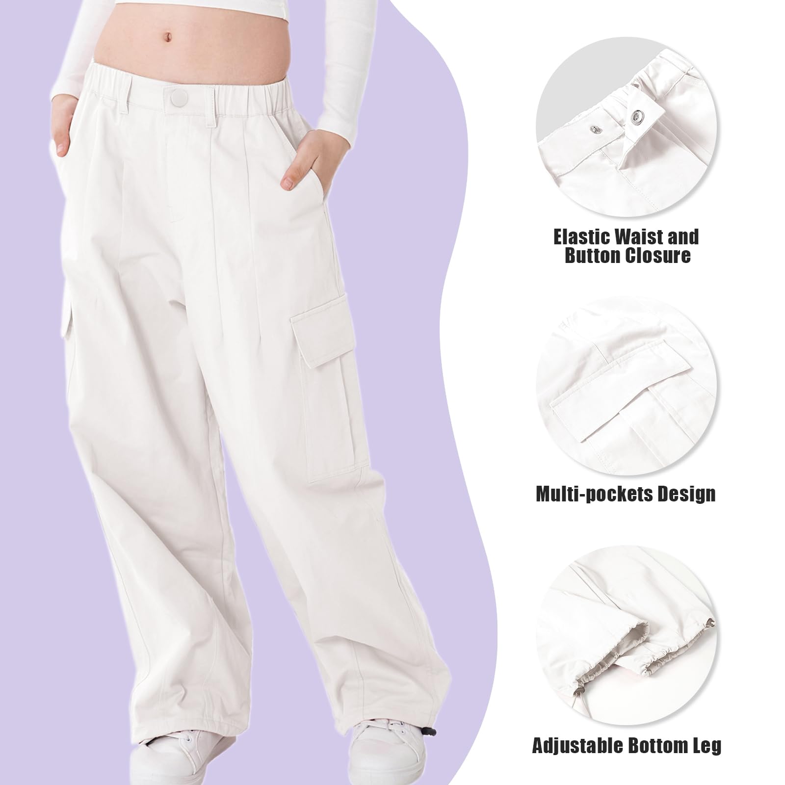 [Adjustable Ankle] Drawstring at the bottom to cinch it also helped with length, to make it more fitted. kids cargo pants girls can be able to wear them both ways, with trendy wide leg bottom look and if you tighten the bottom it doesn’t look the same for tapered leg pants.