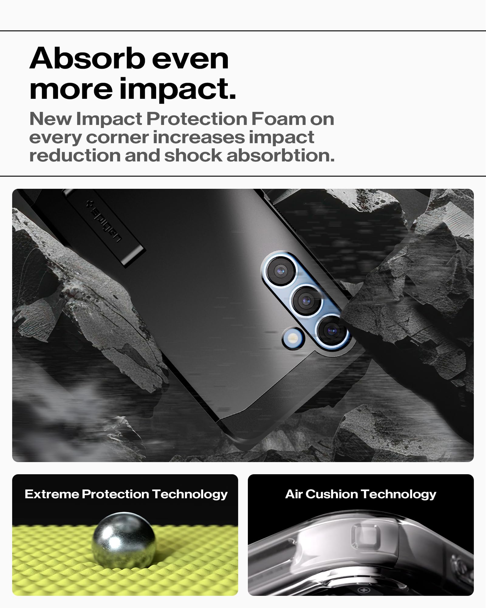 Raised edges for screen and camera protection Military-grade via Extreme Protection Tech