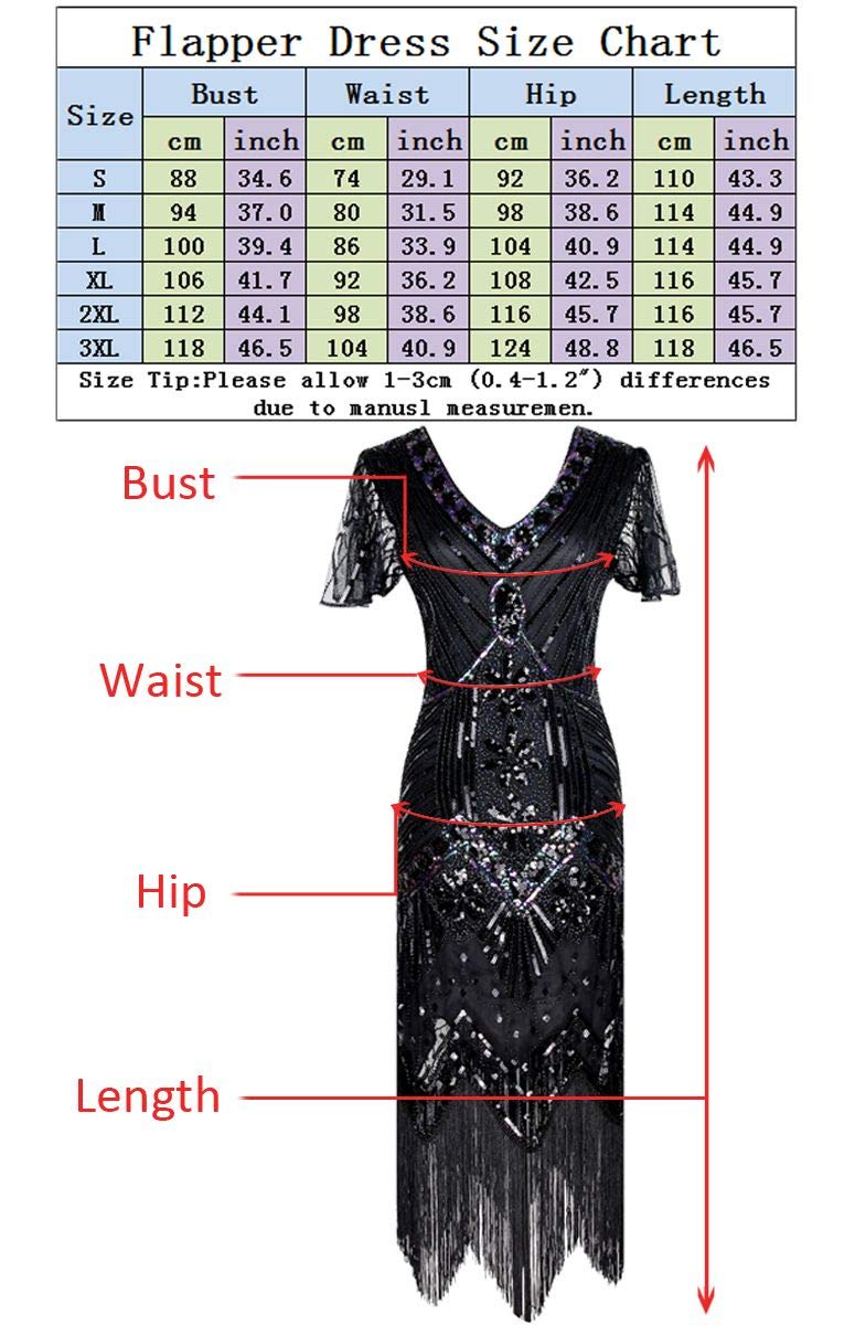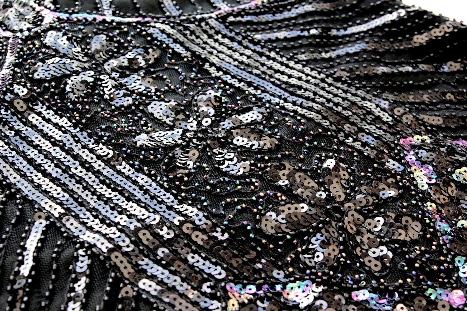 Package include: 1 x 1920S Sequin Tassel Flapper Dress , 2 x Pearl Necklace ; 1 x Long Satin Gloves; 1 x Black Cigarette Holder ; 1 x Headband ; 2 x Earrings ; 1 x Pearl Bracelet ; 1 X Pearl Brooch ; 1 x Pearl Open Ring.