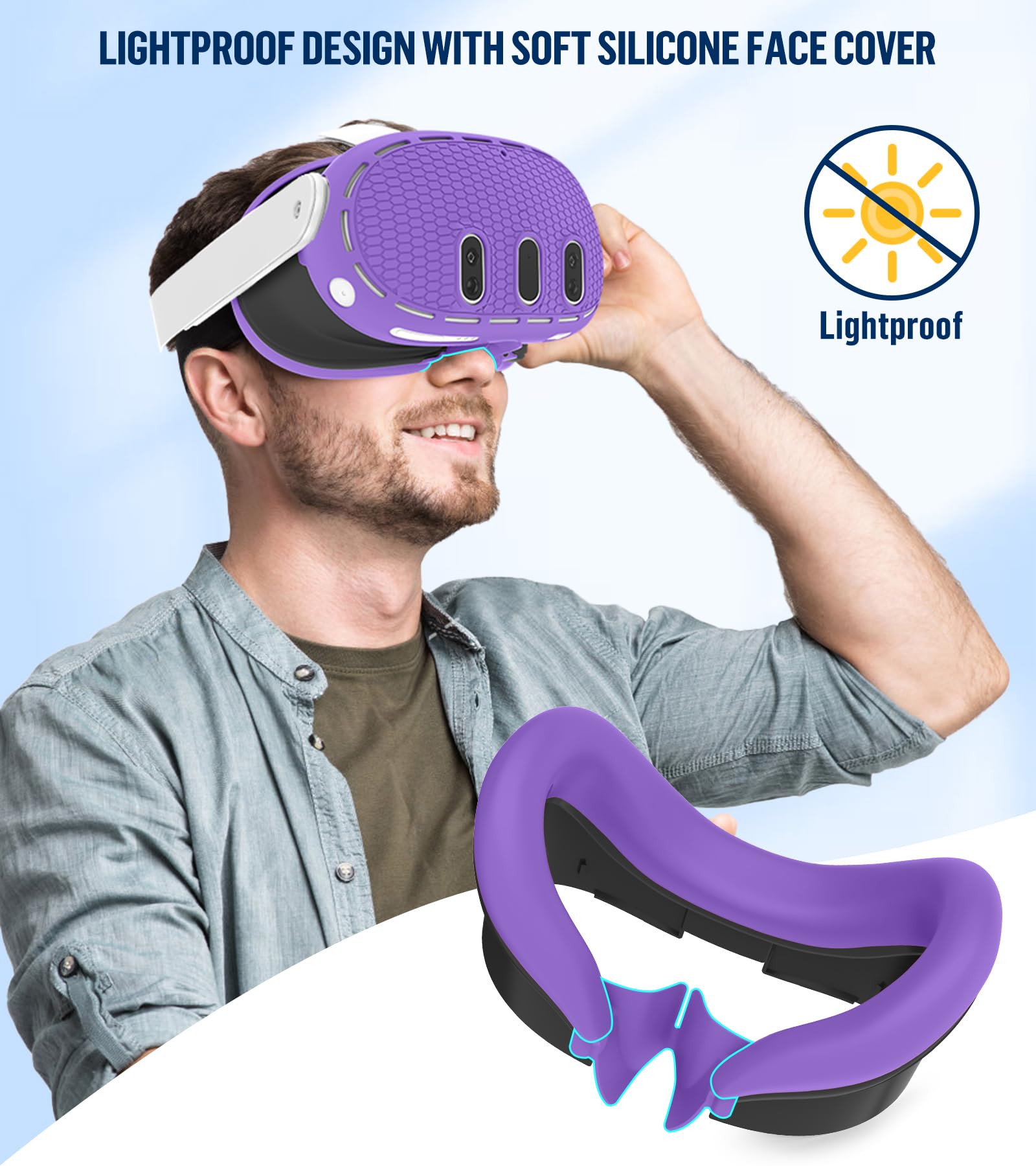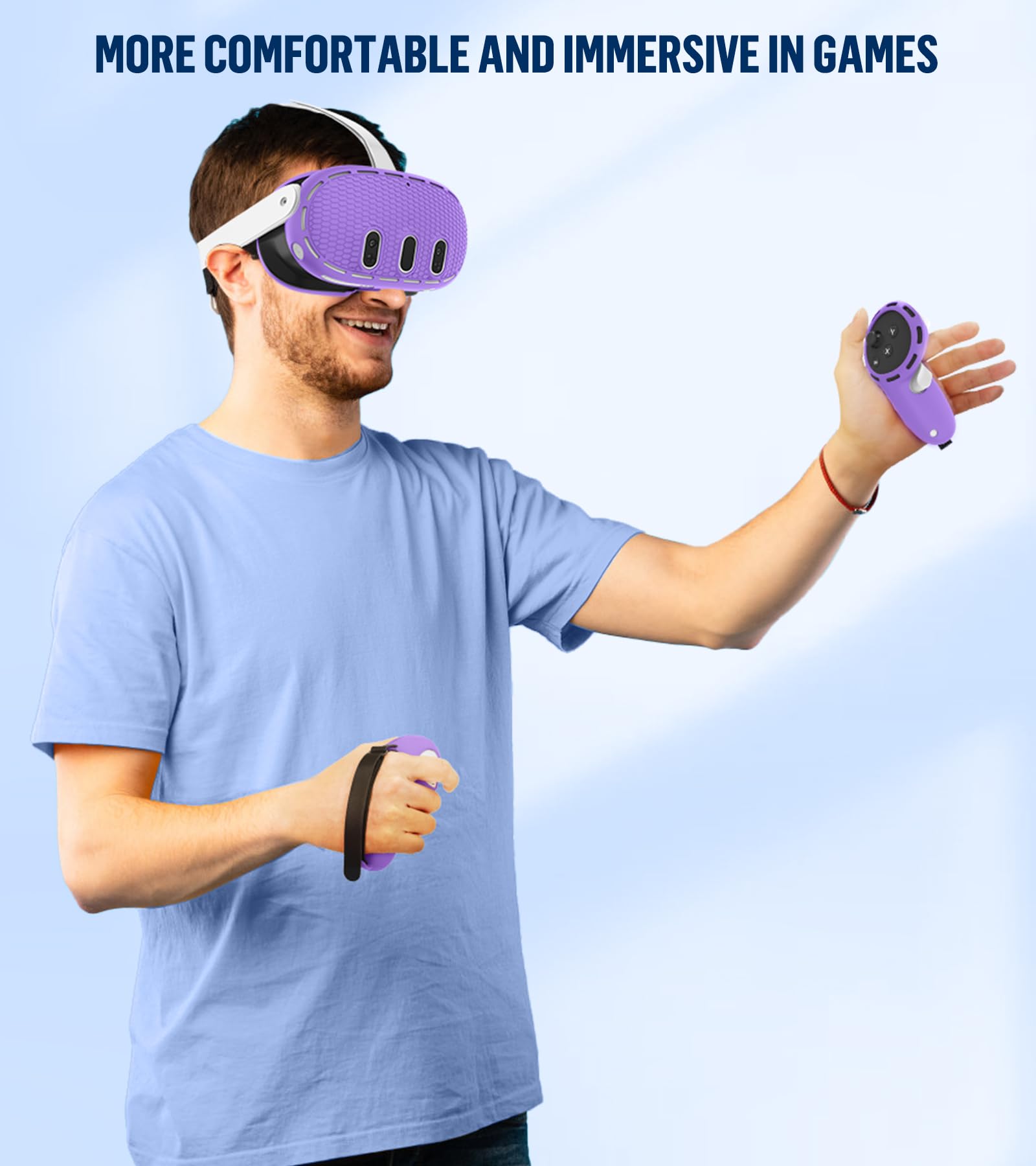【Enjoyable Gaming Experience】The silicone protective skin cover set safeguarding Oculus Quest 3 from scratches, drops, and damage. They are Soft , Comfortable , Sweatproof, Reduce Shocks, lightproof and leakproof, specially designed and enhance gaming experience fit perfect compatible with Oculus 3.