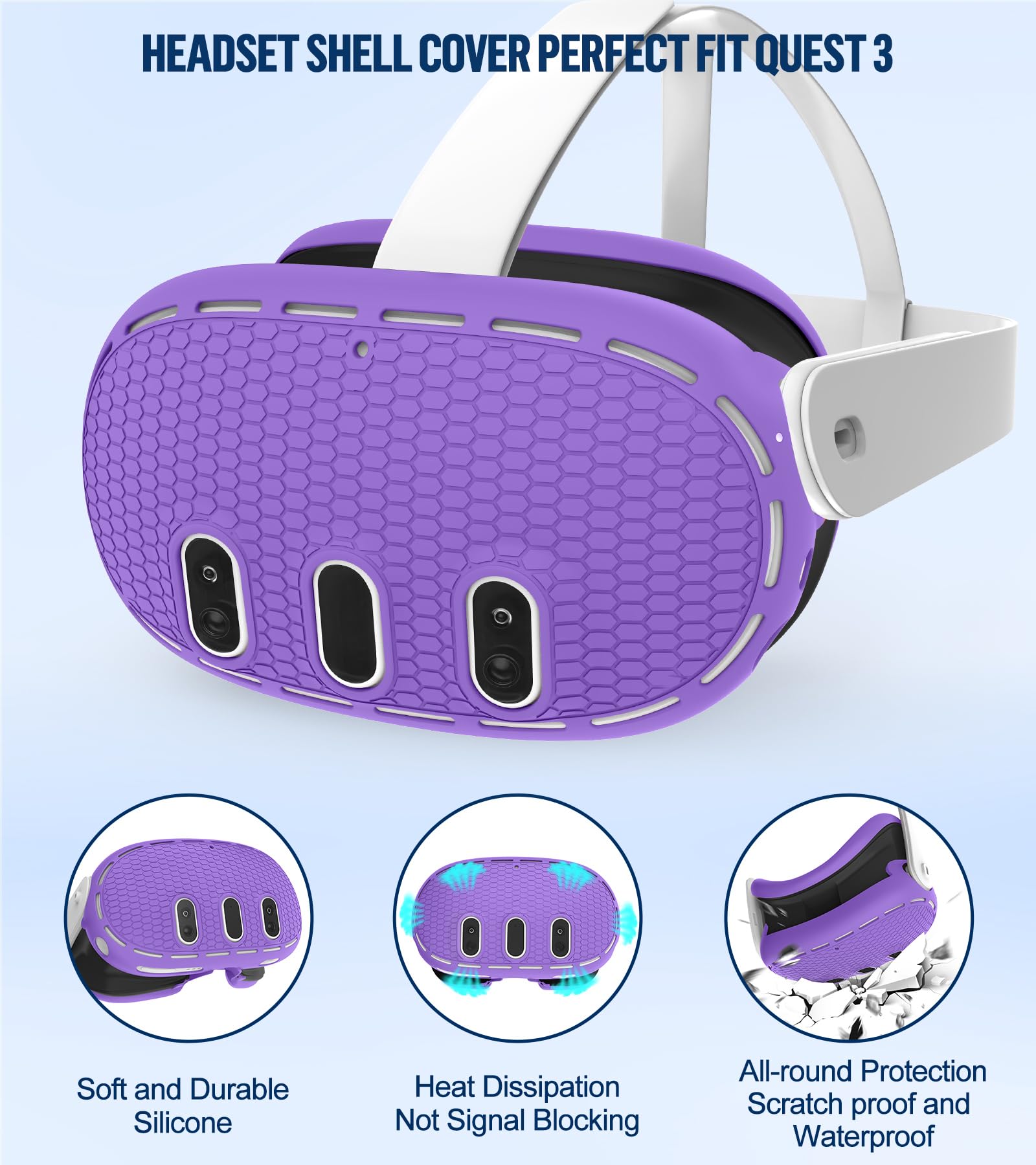 【VR Headset Shell Cover & Lens Caps】Precise hole position ensure heat dissipation and improve signal tracking effectively. VR lens protector ensures sharp and clear visuals by preventing scratches, smudges, and dust. Compatiable with quest 3 silicone facial interface and front lens cover can fit tightly on VR headset prevent from accidental damage.
