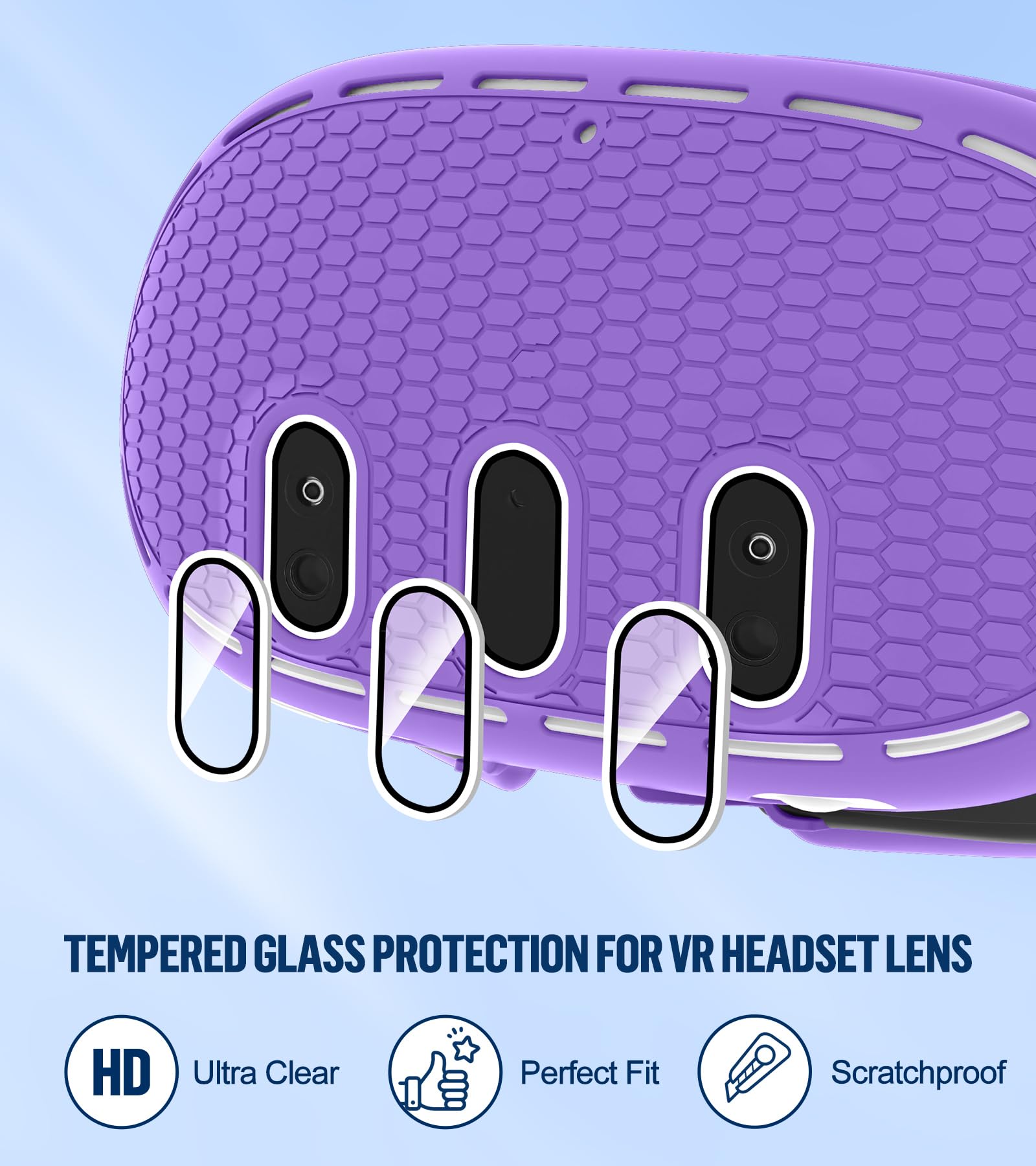 【Easy Installation】Compatible for quest 3 facial interface cover set is very easy to install and remove, easy to use. You can clean and wipe the silicone surface easily and quickly just with a wet paper towel. The tempered glass protective film for oculus quest 3 features ultra clear, scratch resistant, keeps the lens clean and use for long time.