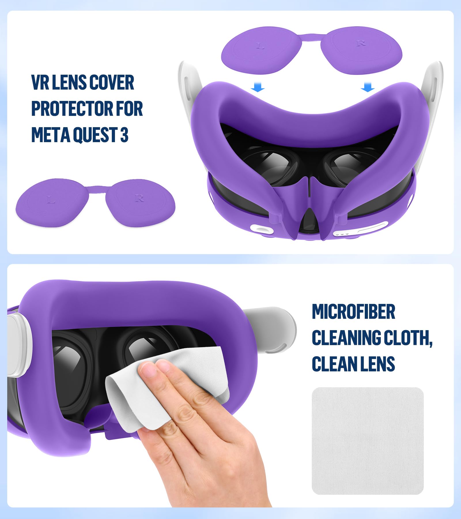 【Compatible with Meta Quest 3 Accessories】Incleuded 1x VR Silicone Face Cover, 1x VR Headset Shell Cover, 2 x Controller Grip Cover, 3 x Lens Tempered Glass Protector, 1x Lens Camera Protector, 2x Joysticks Cover, 1 x Cleaning cloth. Ensuring full protection for your Oculus Quest 3.