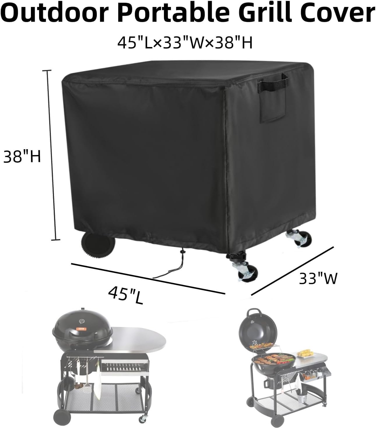 Dimension: 45" L x 33" W x 38" H. Suit for 22 inch Weber performer charcoal grill, for Generic 30 in barrel charcoal grill with side table, for Vevor 22 Inch Portable Charcoal Grill with Cart, also fit for another grill table or grill cart within the same size. Please check the size before purchasing