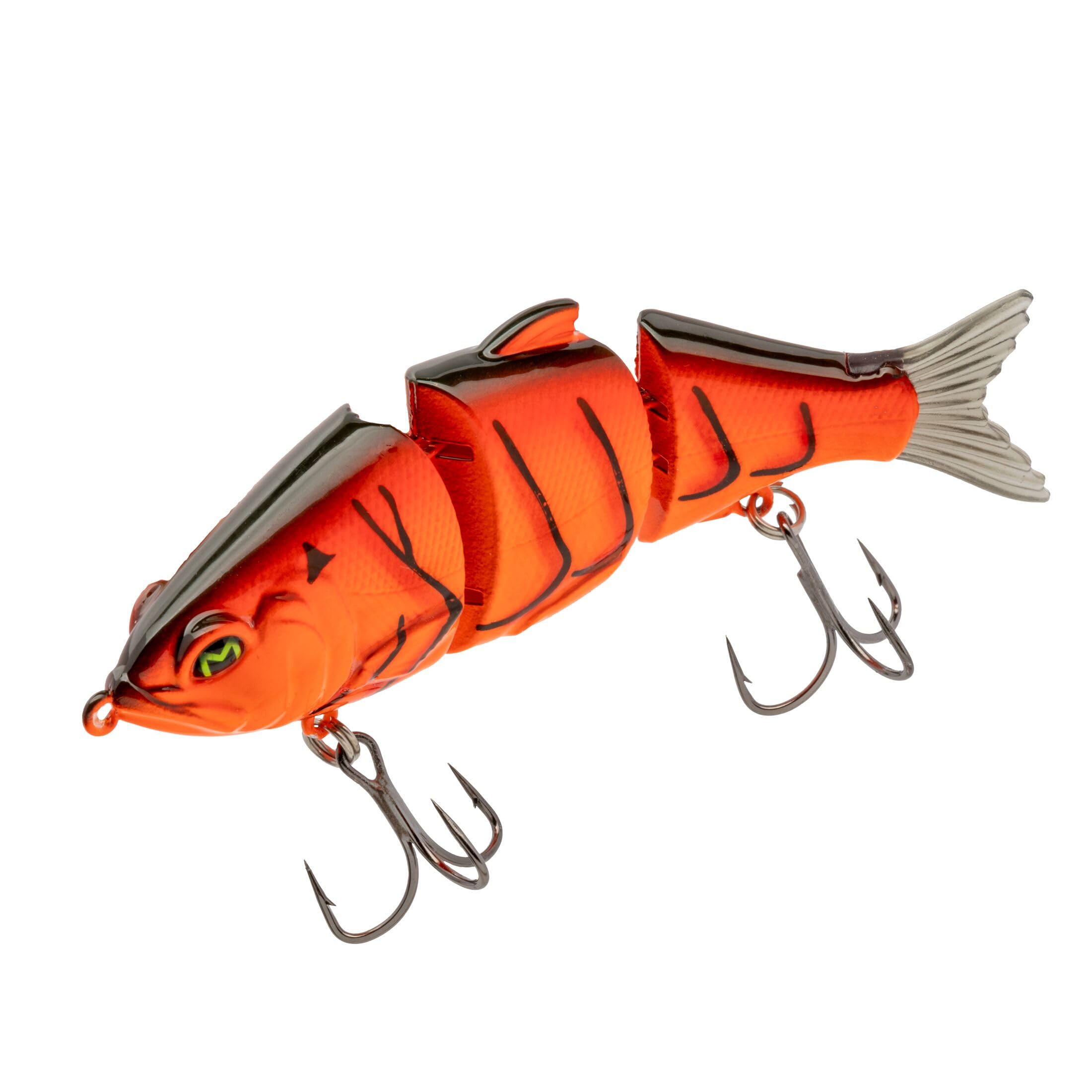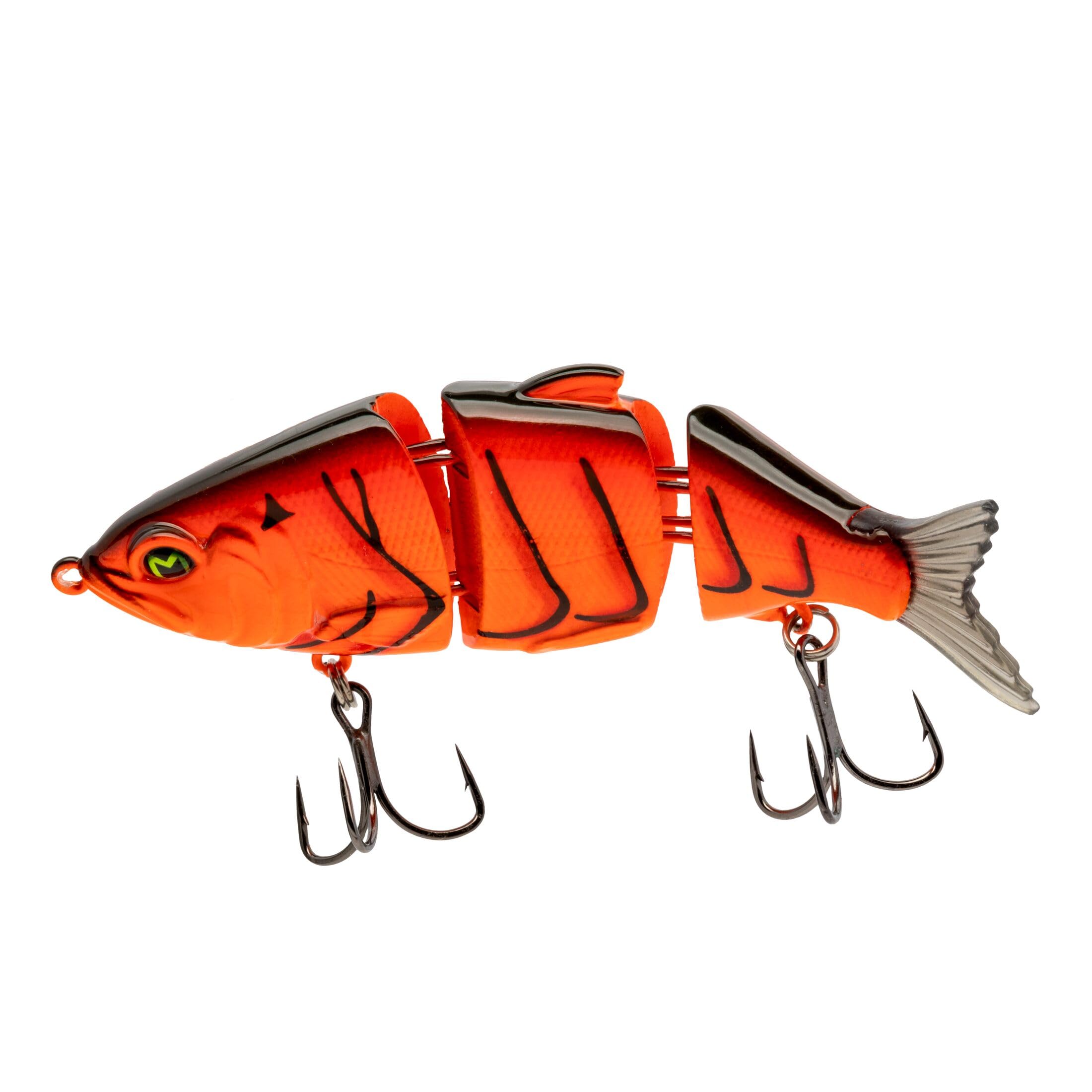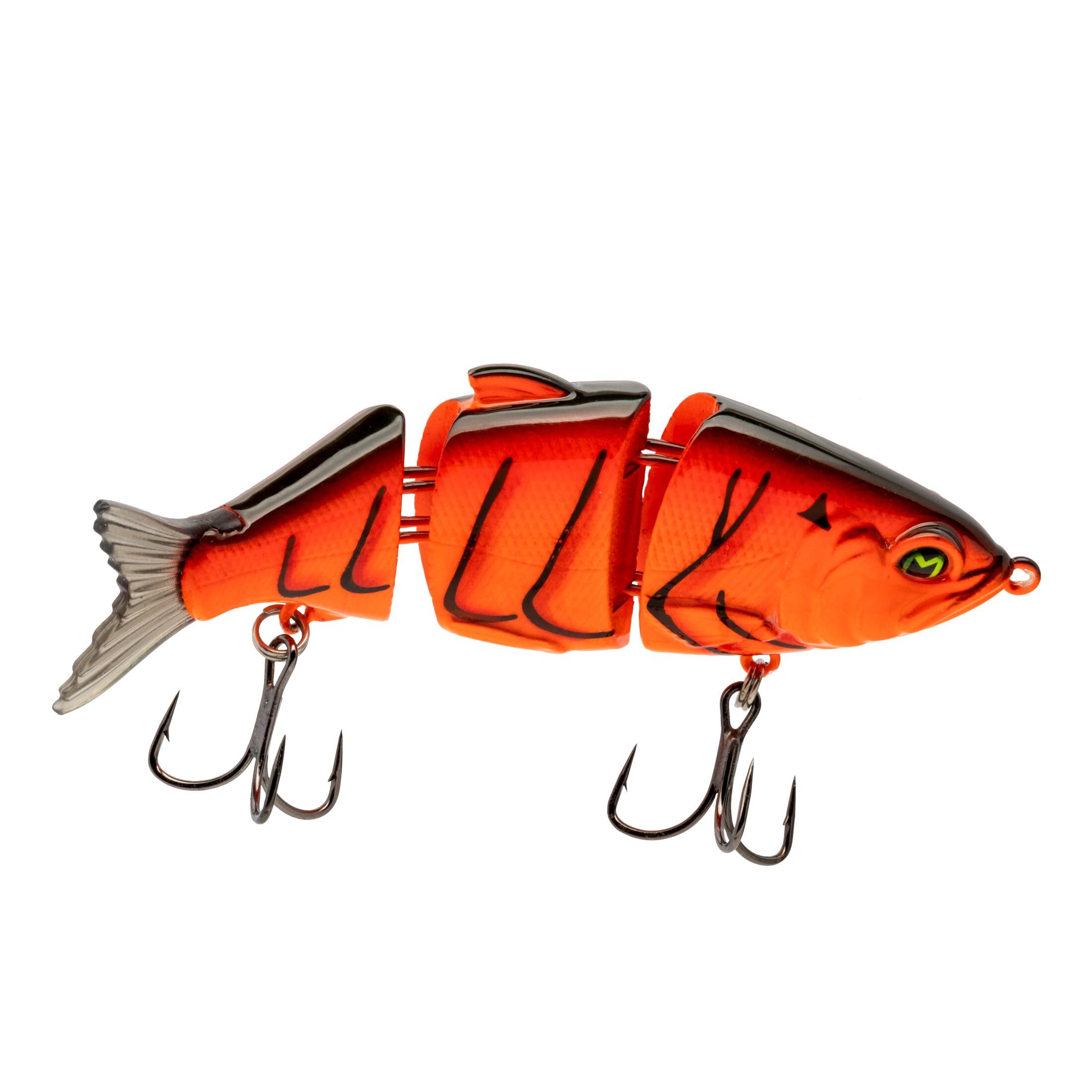 Multi-jointed swimbait that sinks slowly and swims with incredibly lifelike action. Featuring a sound chamber that emits a powerful rattle when burned at fast speeds. Crank it just below the surface or slow roll it over cover. The multi-jointed body runs true, even at “MACH speed.” Featuring eye-popping colors and Mustad KVD Elite Short Triple Grip Hooks for second-to-none hook penetration. And the signature "M" that lets fish know just who they are dealing with
