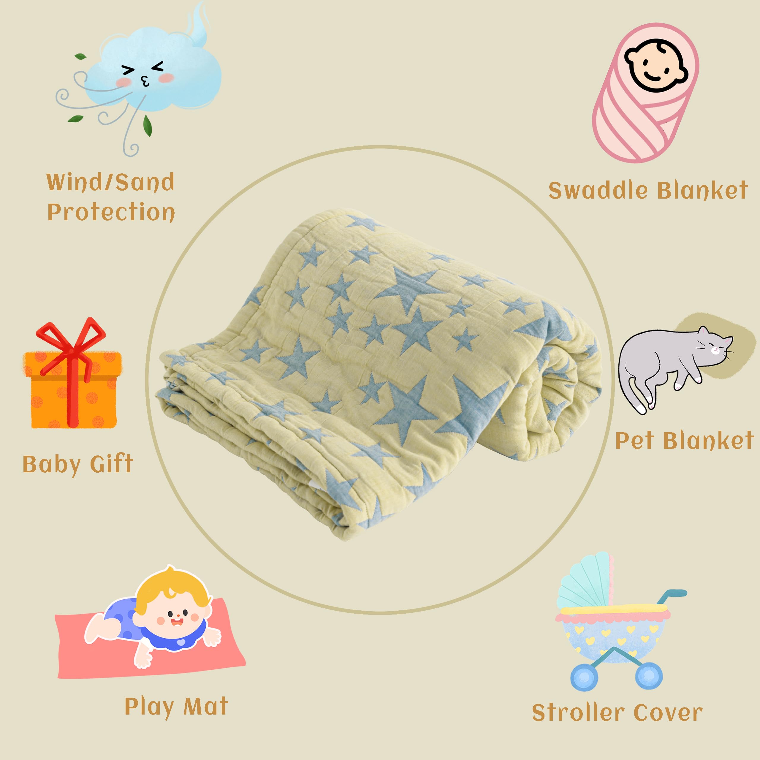 Multiple use: These muslin blankets can be used for tummy time, traveling, cuddling, stroller and car seat use, picnics, and even as a throw blanket.