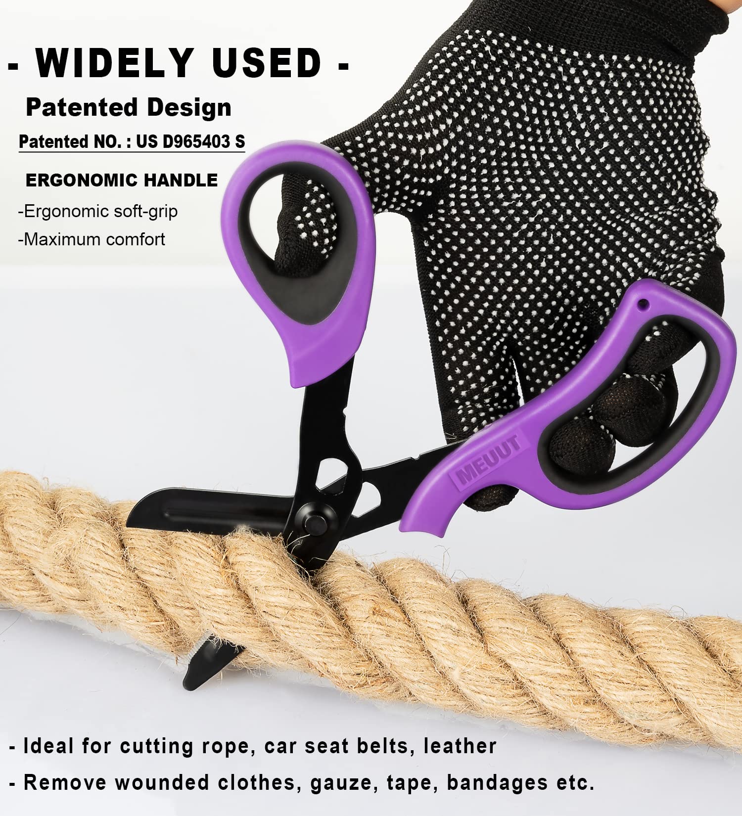 【ALL-PURPOS】: Cut anything safely and efficiently with these sharp scissors. Ideal for cutting ribbon, burlap, rope, car seat belts, leather, remove wounded clothes, gauze, tape, bandages etc. Perfect for outdoors, first aid, nurse, doctor, firefighter, gardening, household.