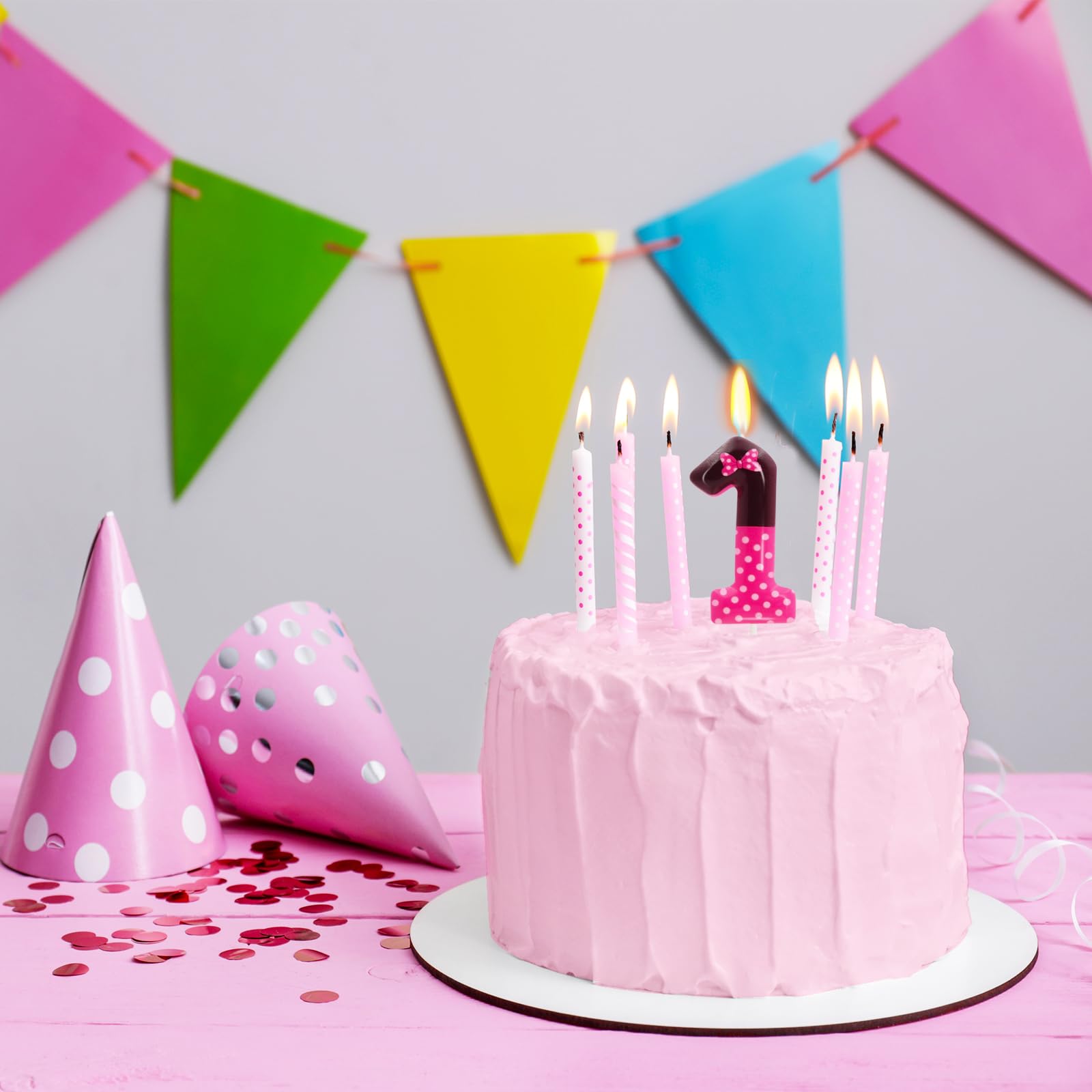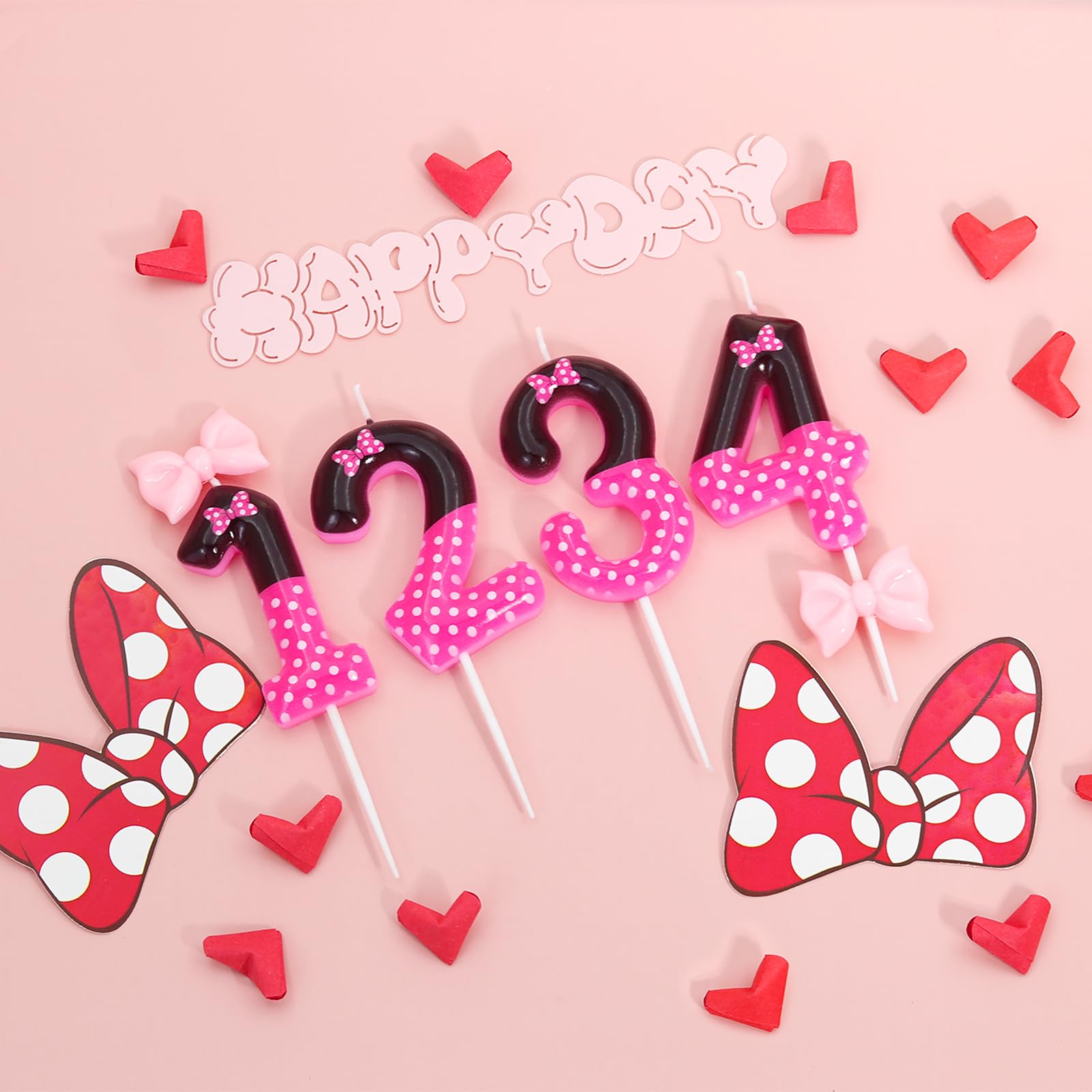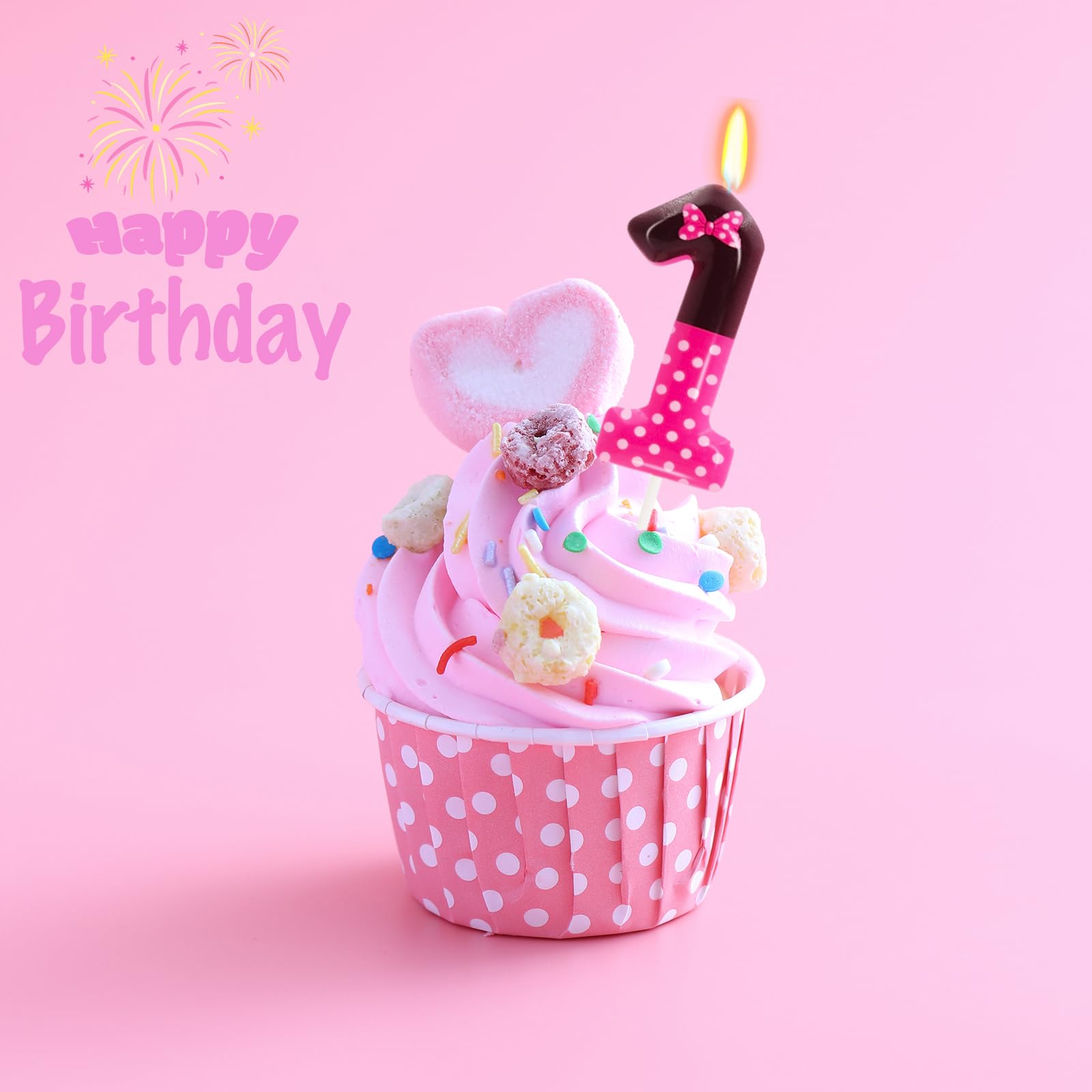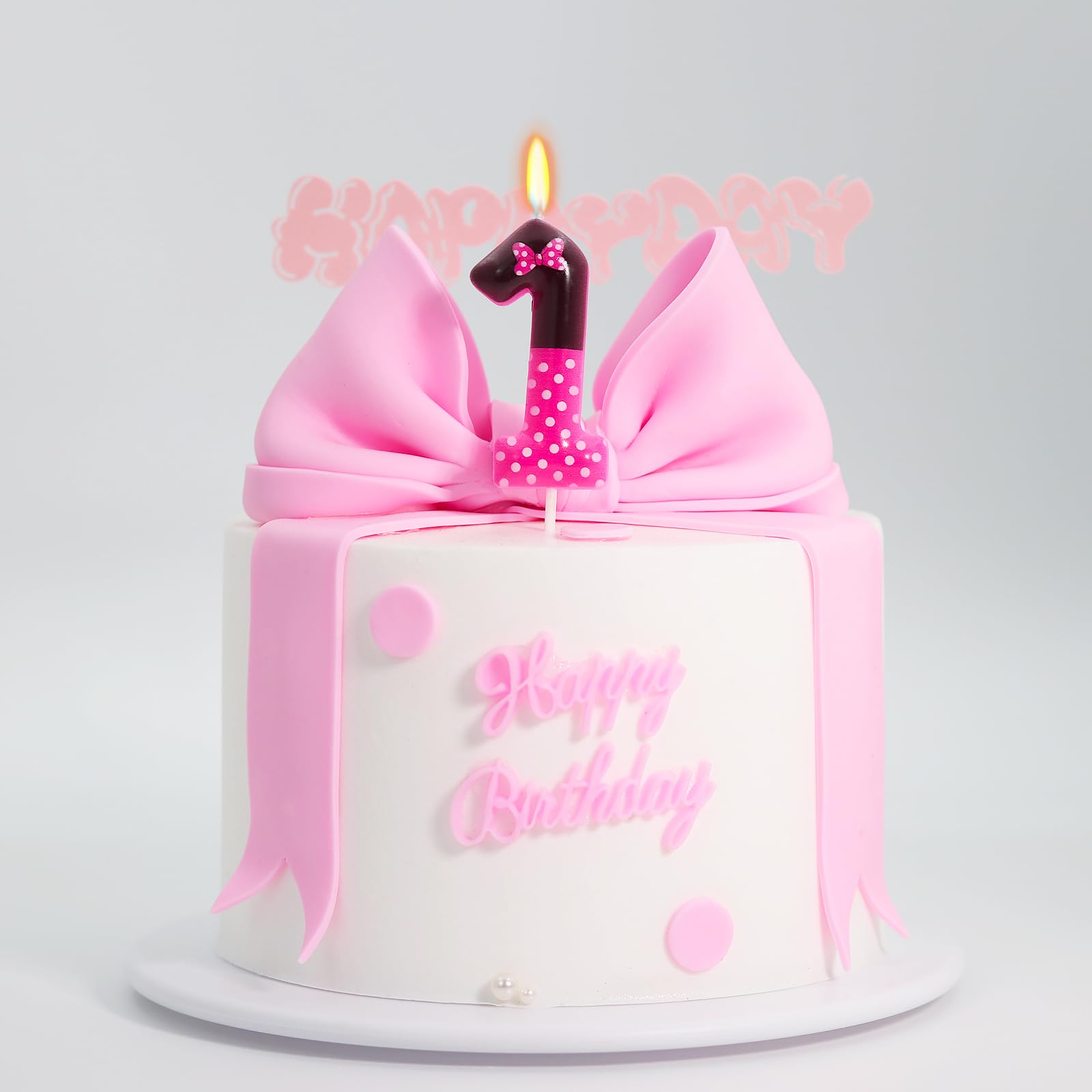 BEAUTIFUL DESIGN: With a pink and black colour clash design, this birthday candle looks playful and cute with a cute bow and white polka dots printed on the candle
